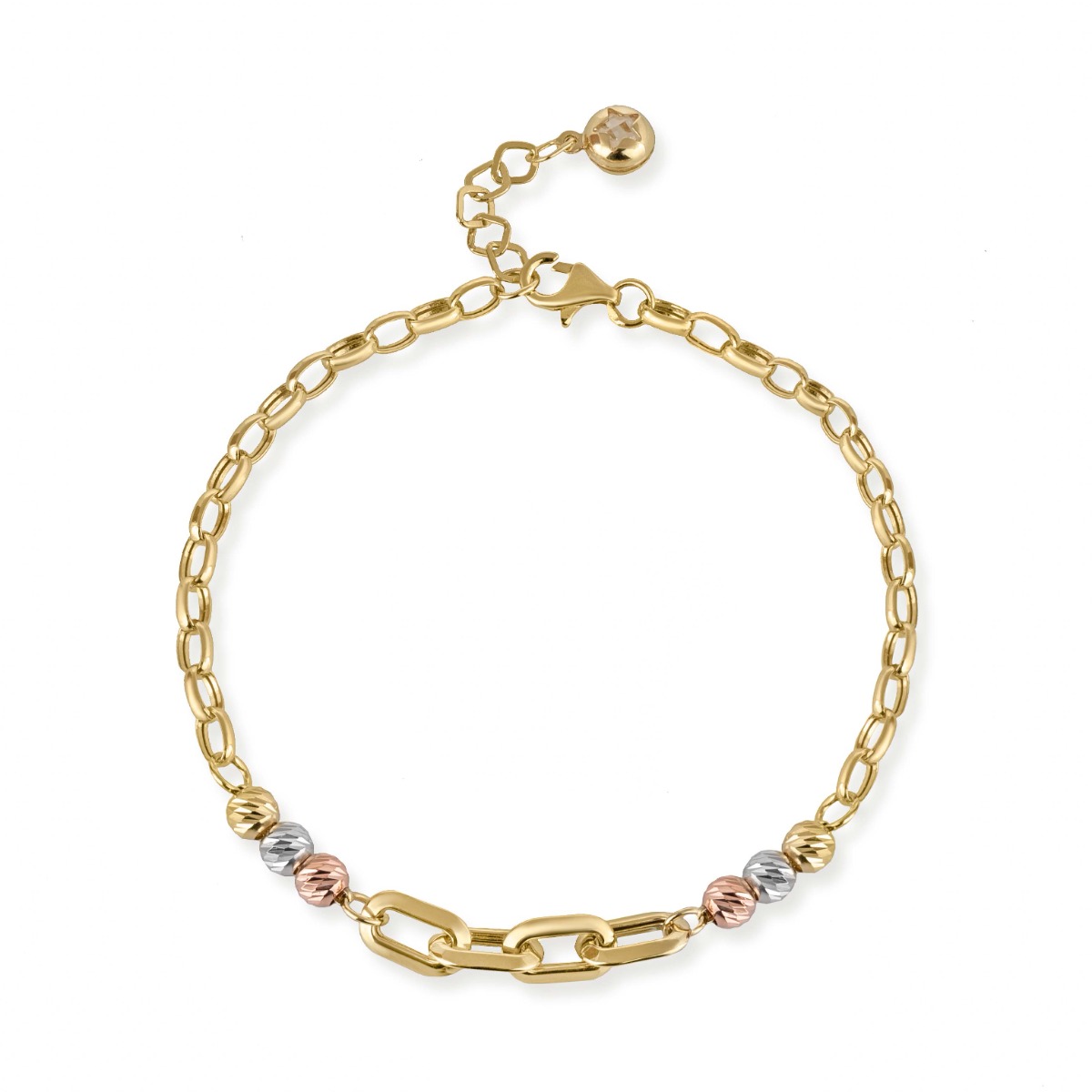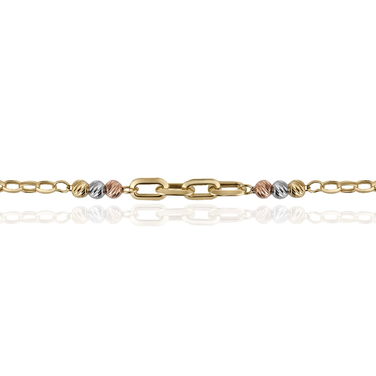 Изработена от жълто злато с детайли в бяло и розово злато, гривната съчетава три цвята в изтънчена хармония.