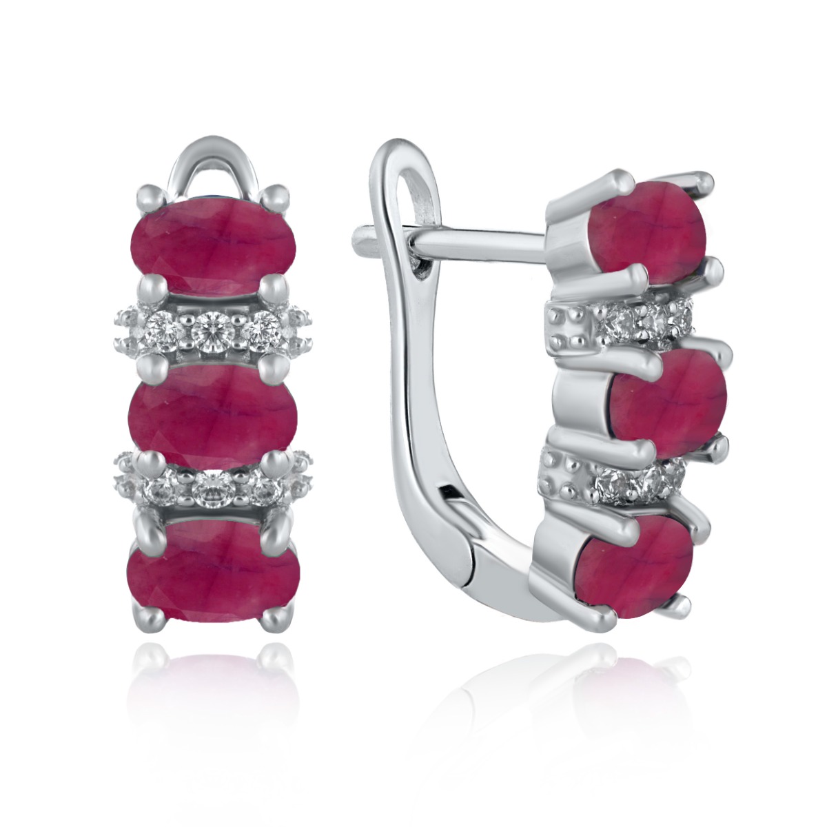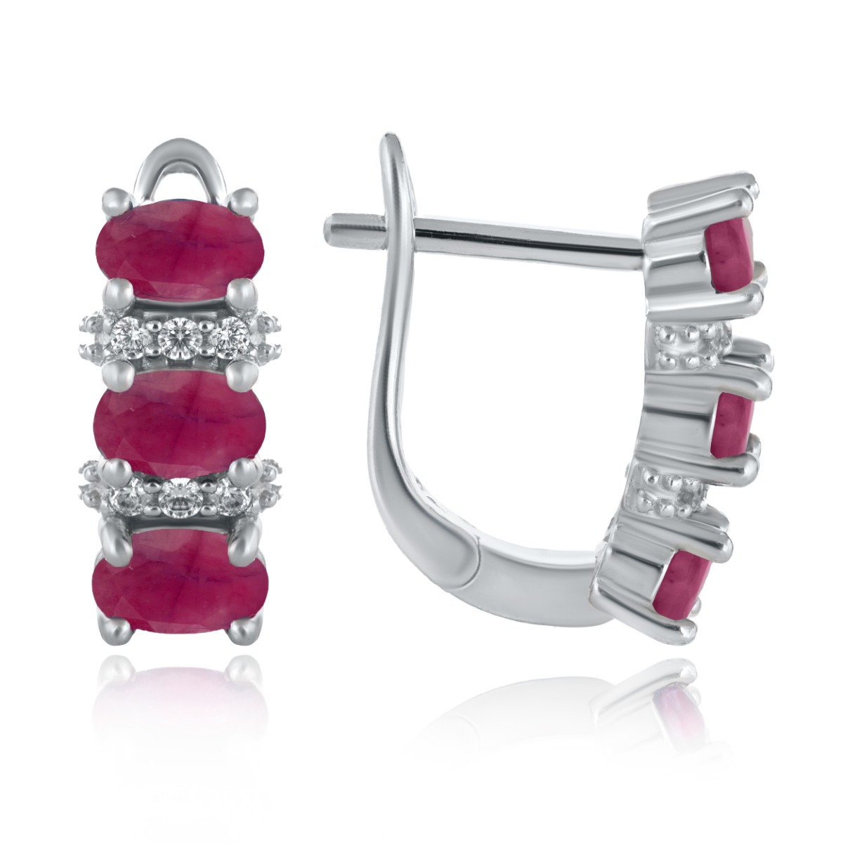 Ефектна изработка на новите ни дамски обеци с английско закопчаване, съчетаващи красиво родирано сребро с перфектни естествени камъни рубин и нежни циркони. Всички бижута с естествени камъни са придружени от специален сертификат, удостоверяващ автентичността им. На този сертификат можем да изпишем и лично послание за Вас или за когото е бижуто. Вижте още информация тук.