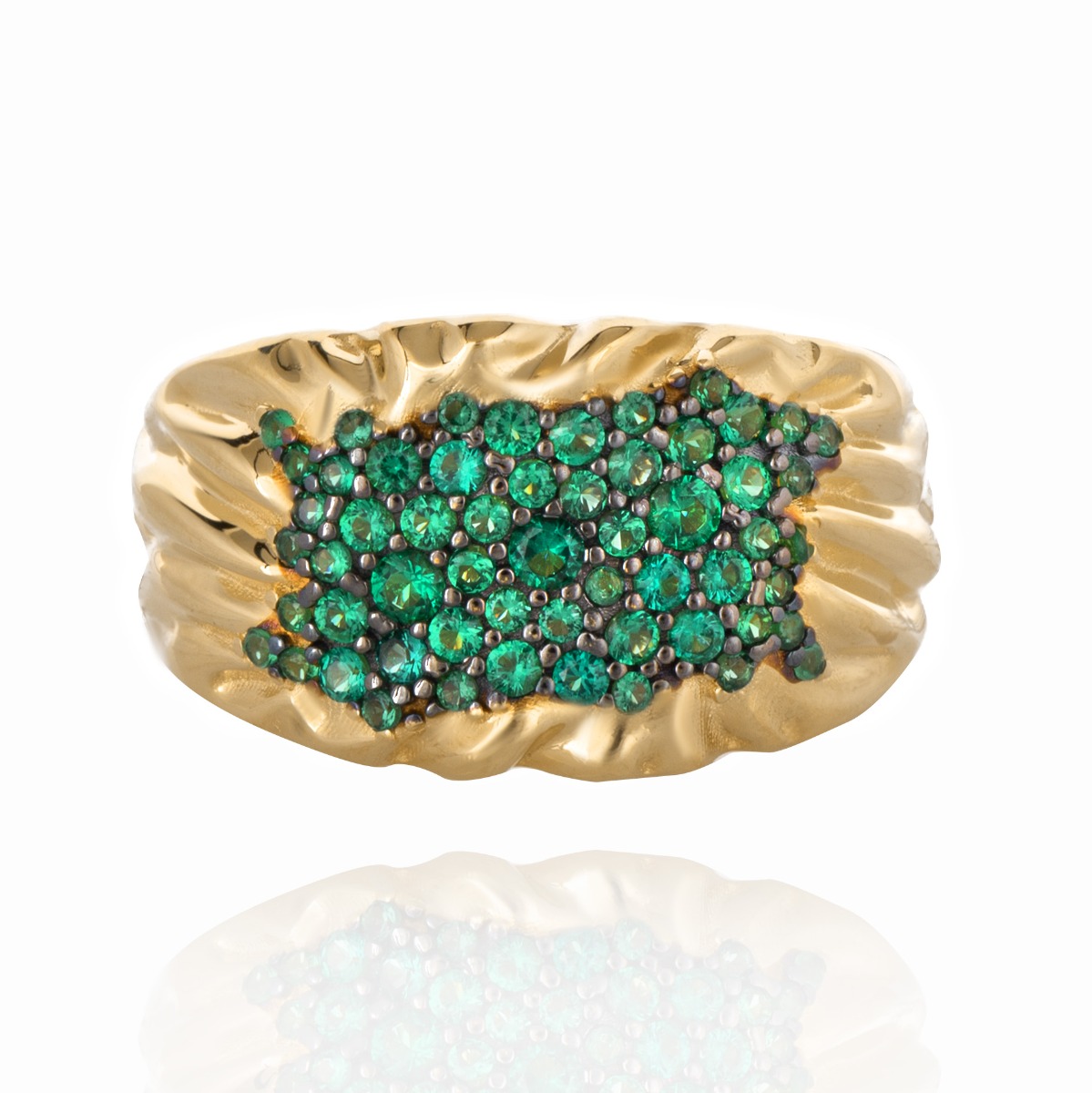 Дамски Златен Пръстен Green Stone - Масивен златен пръстен с италианска изработка. Нежни златни извивки, които създават пленяващ ефект, допълнен от изискани зелени циркони. Перфектното бижу за подарък на ценена от Вас дама.