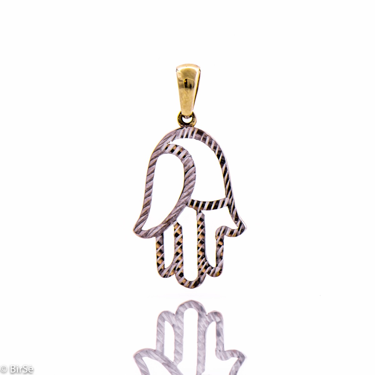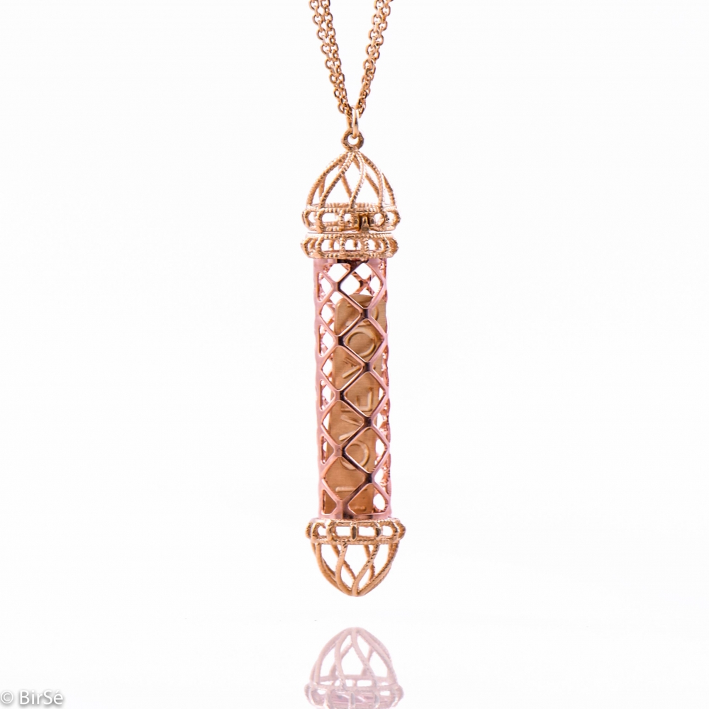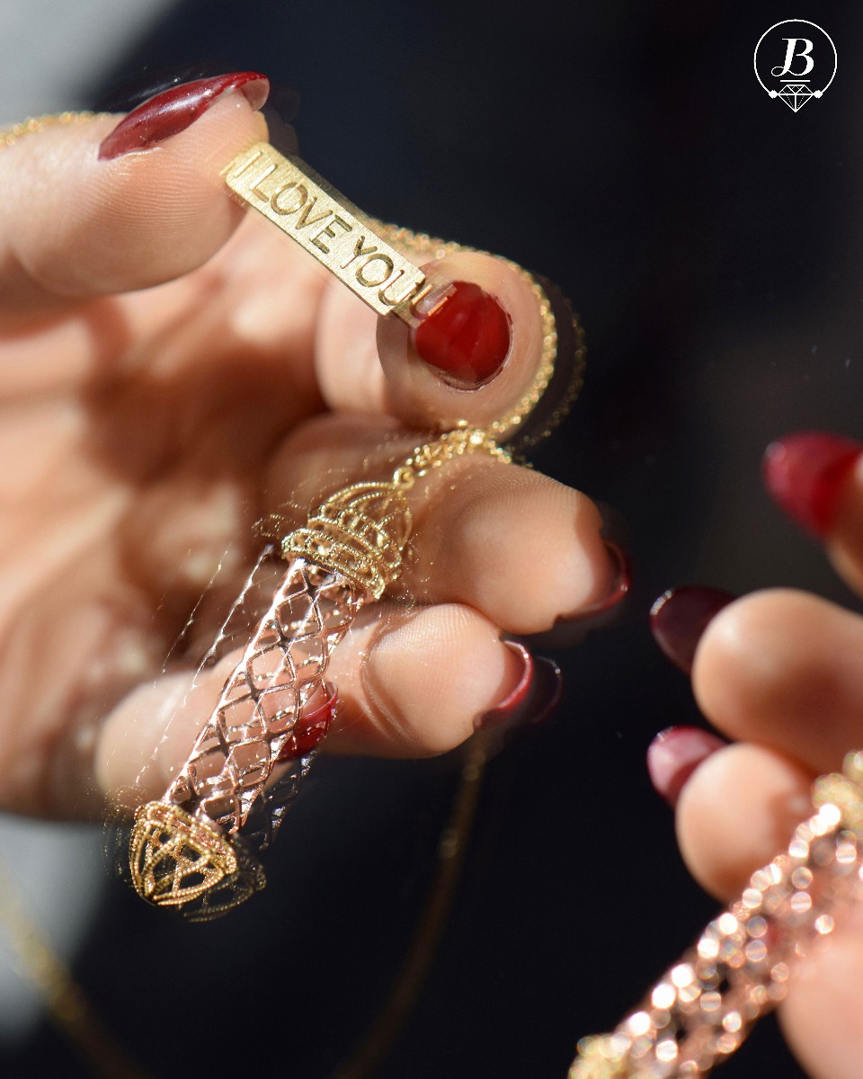 Любовен амулет от злато с художествено оформени детайли. Отделните елементи се комбинират един с друг, като златната плочка с надпис „Обичам те“, може да се гравира от задната страна с лично послание. Нежна италианска изработка от фино съчетание на класическо жълто с изящно розово злато.