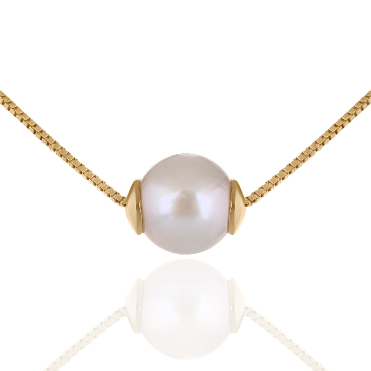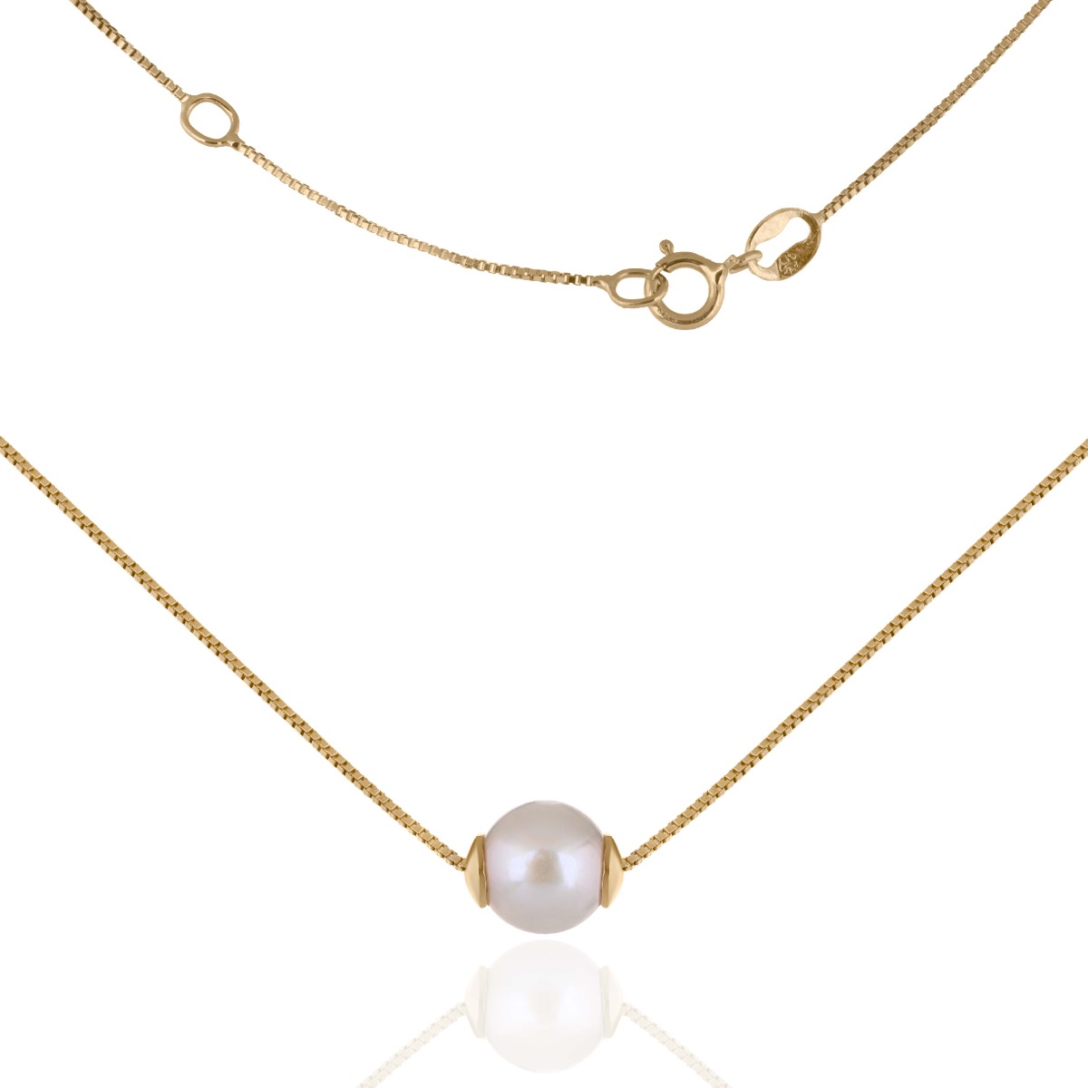 Открийте класическата красота в модерна интерпретация с това фино дамско колие от жълто злато, украсено с изящна бяла перла с диаметър 0,7 см. Перлата – символ на женственост и чистота – е поставена в изчистен златен обков, който подчертава естествения ѝ блясък и деликатност.