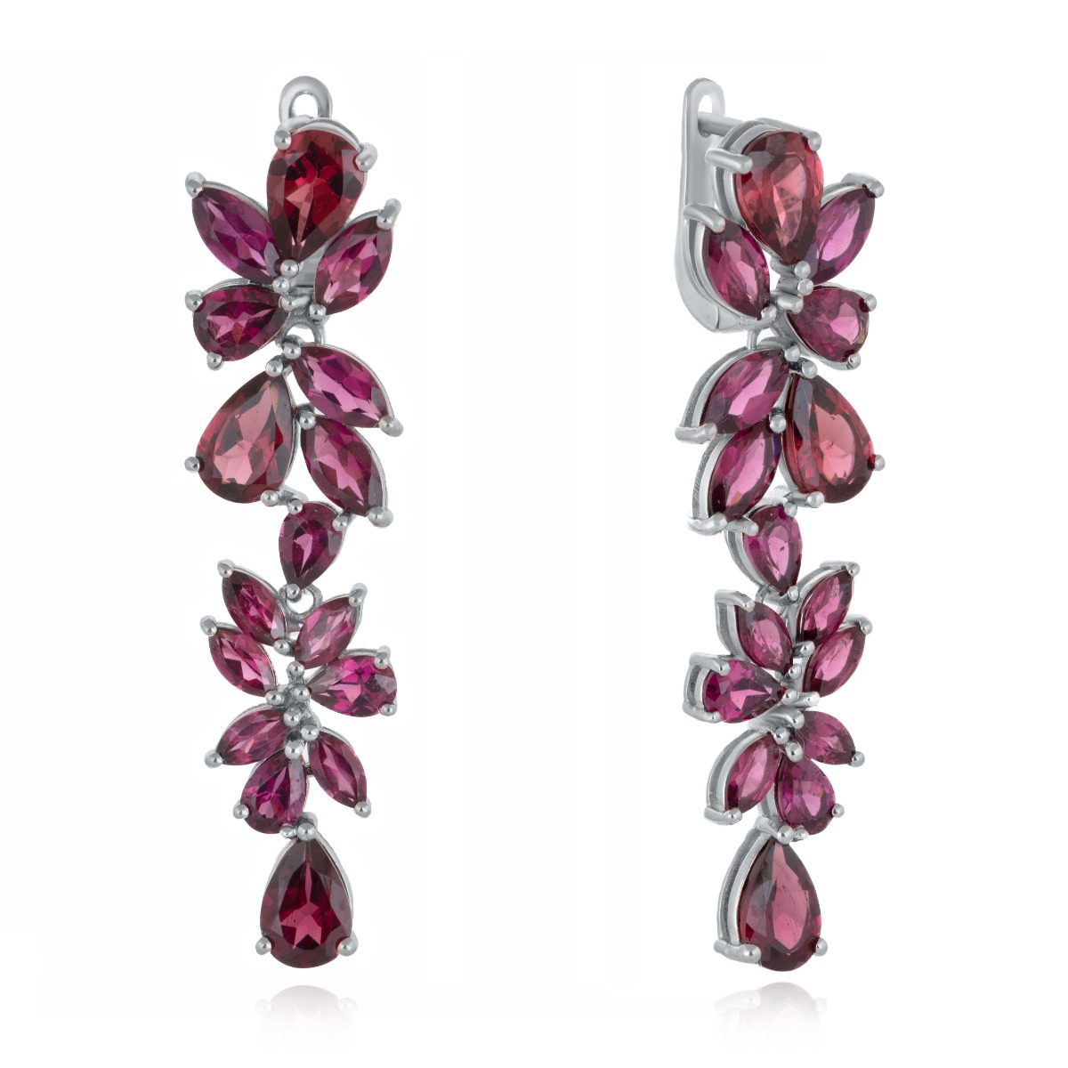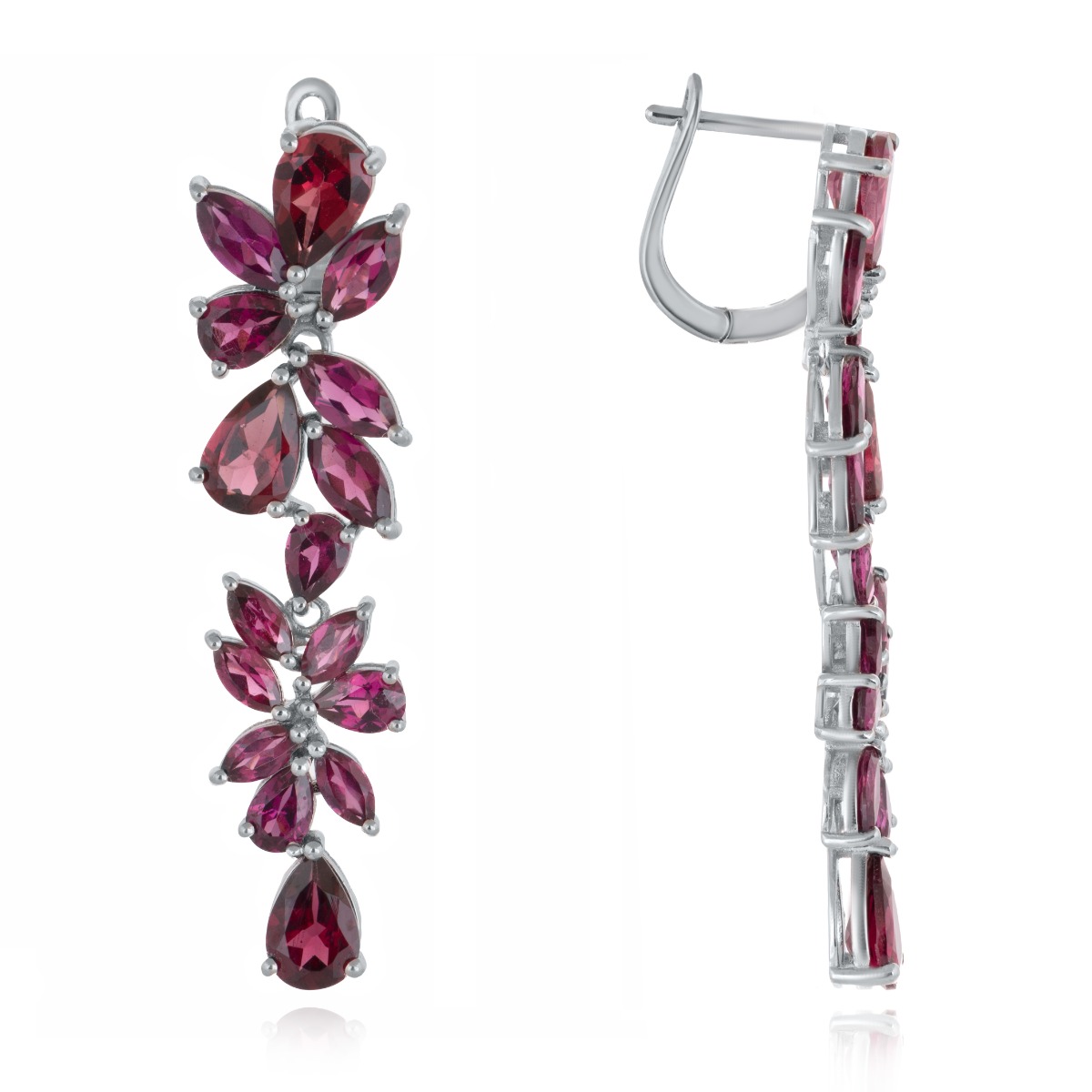 Елегантни дамски обеци с английско закопчаване, красив водопад от многобройни камъни естествен родолит, допълнени от изтънчен дизайн от родирано сребро. В изключителен комплект с висулка и пръстен. Всички бижута с естествени камъни са придружени от специален сертификат, удостоверяващ автентичността им. На този сертификат можем да изпишем и лично послание за Вас или за когото е бижуто.