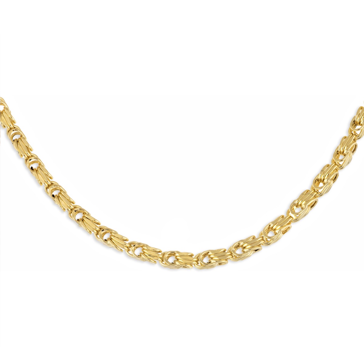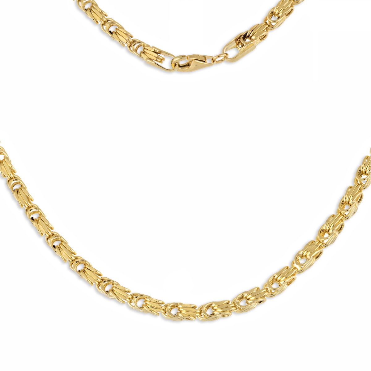 Ексцентричен златен синджир с модернистично оформен дизайн на плетката. Стилна изработка на елементите и детайлите изцяло от класическо жълто злато. Красиво бижу за елегантни дами.