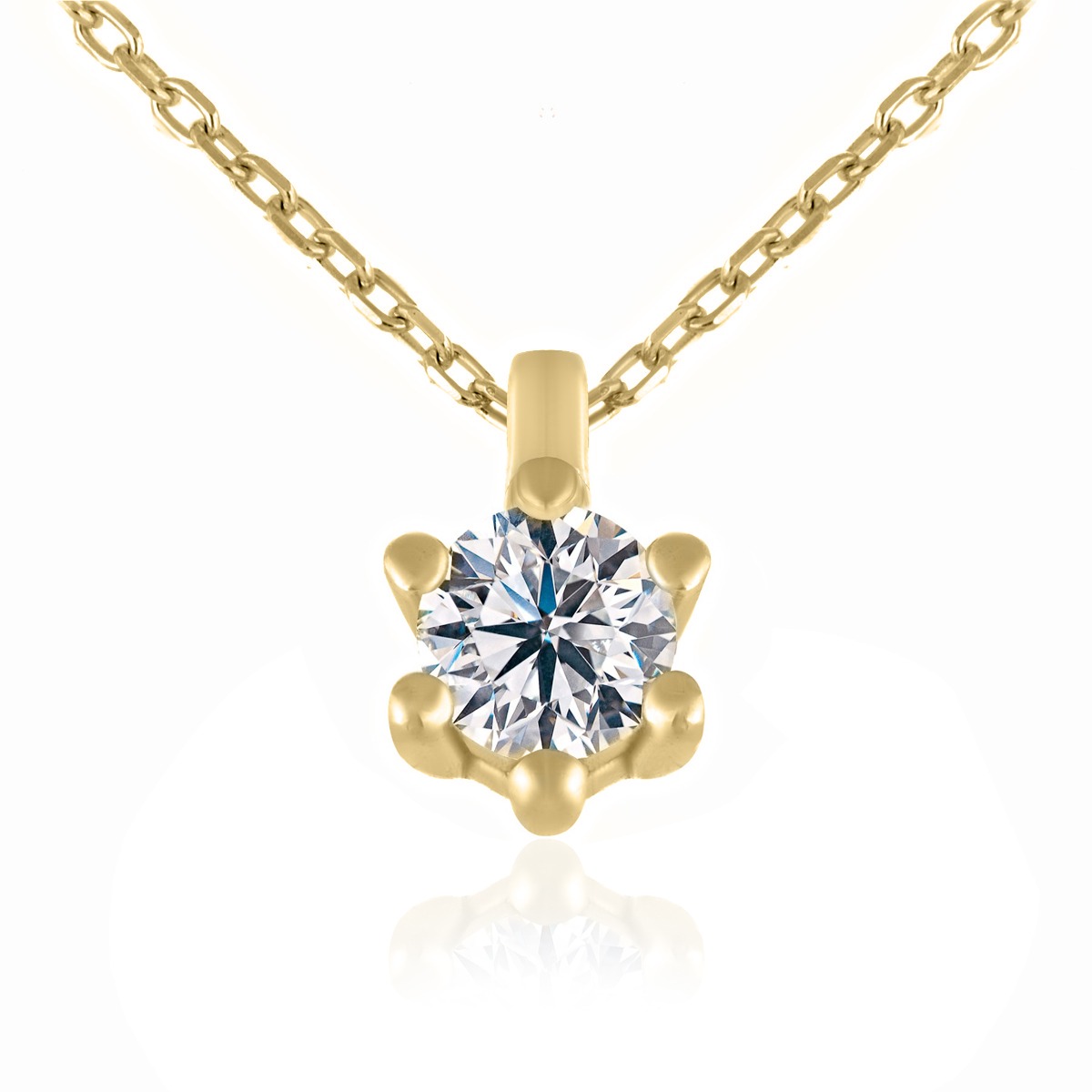 Изискано и елегантно, това фино колие е изработено от 14-каратово жълто злато и е украсено с централно поставен диамант с тегло 0,05 ct. Класическата шесто-зъбна каса подчертава блясъка и чистотата на камъка, превръщайки го в символ на стил и изтънченост.