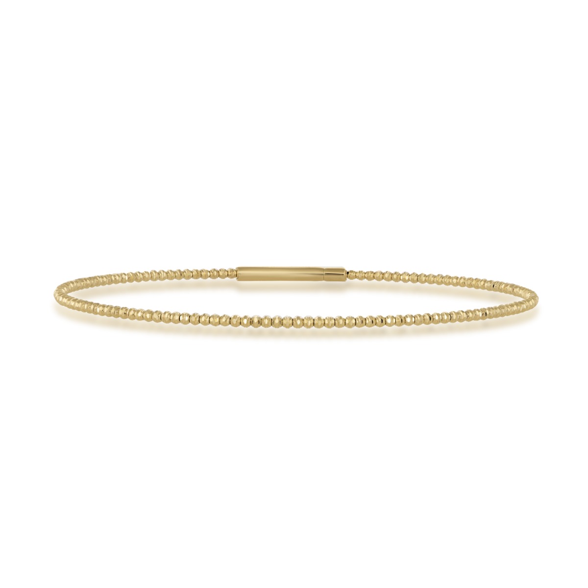 Елегантна гривна от класическо жълто злато, изработена от фини сферични елементи, които създават красив и деликатен блясък. Нежният ѝ дизайн придава изтънченост и я прави подходяща както за ежедневна визия, така и за специални поводи. Практичното закопчаване осигурява удобство и сигурност при носене. Стилен и универсален аксесоар, който допълва всяка визия с фин златен акцент.