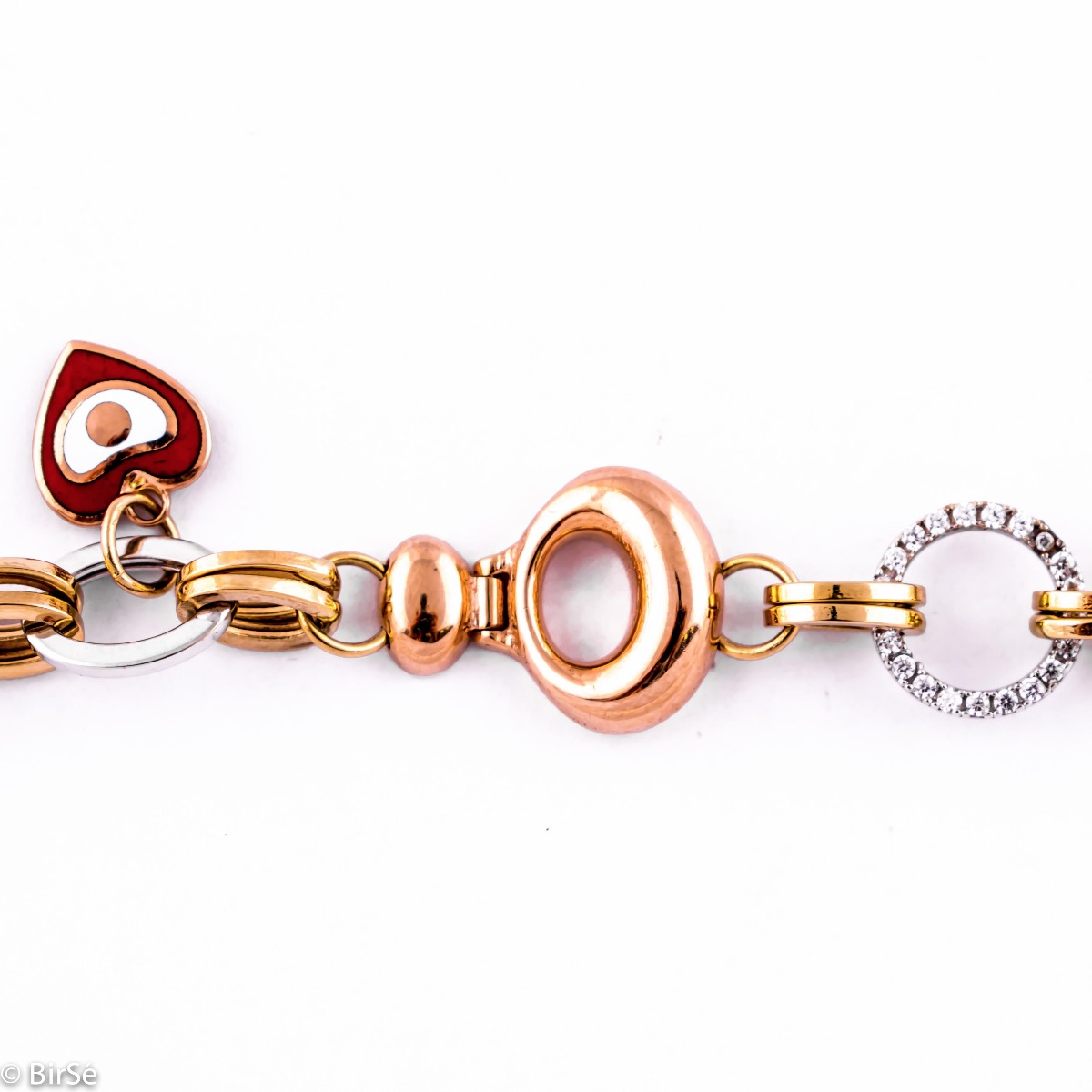 Превъзходно трио от жълто, бяло и розово злато в неустоима гривна със сърце. Изработката е италианска, а добър повод за покупка – подарък за рожден ден.