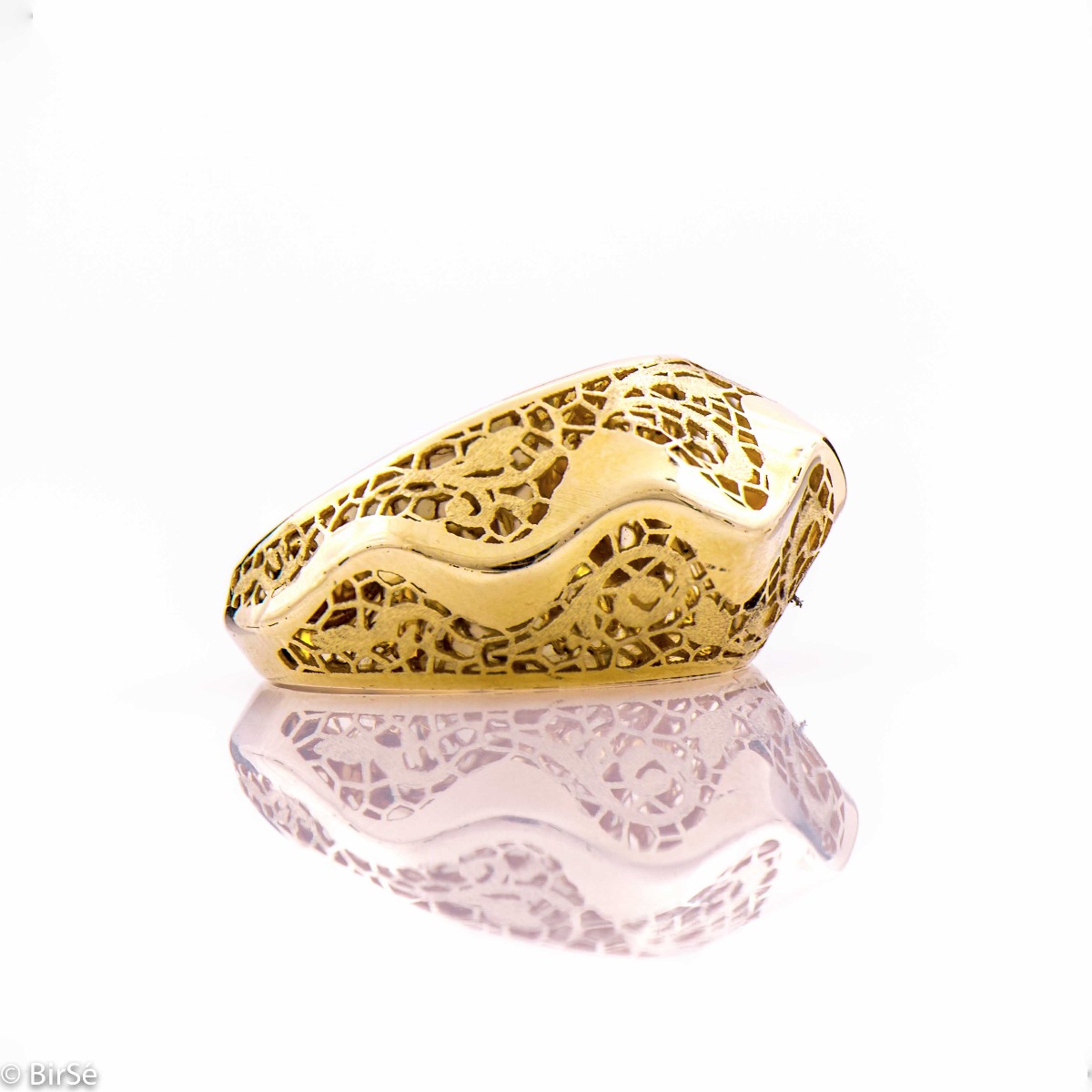 Ефектен дамски пръстен, съчетаващ елегантността на жълтото злато и съвременния дизайн. Подходящ подарък за рожден ден с италианско качество и изработка.