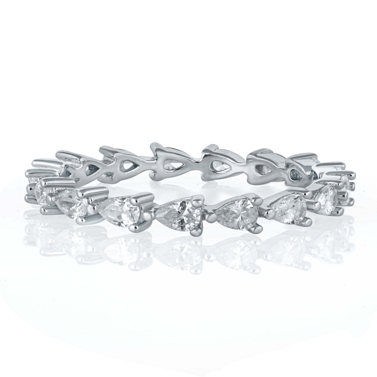 Елегантен и бляскав, този изискан сребърен пръстен е създаден, за да подчертае красотата и женствеността на всяка ръка. Декориран с ред фино шлифовани циркони във форма на капка, той впечатлява с изключителен блясък и луксозно излъчване.