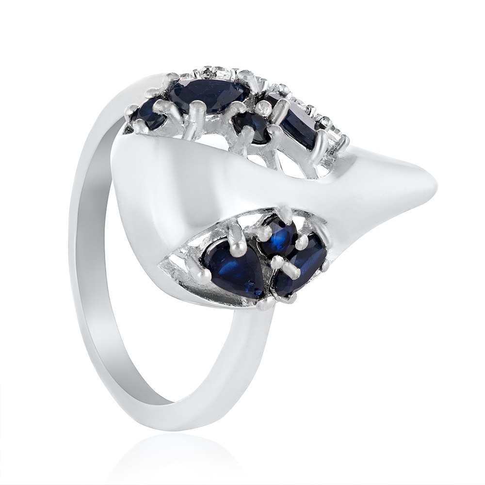 Изтънчен дамски пръстен с изящна изработка, преплитаща сияен естествен сапфир, с нежни форми, с красиво родирано сребро и блясък от фини циркони. В изискан комплект с висулка и пленителни обеци. Всички бижута с естествени камъни са придружени от специален сертификат, удостоверяващ автентичността им. На този сертификат можем да изпишем и лично послание за Вас или за когото е бижуто. Вижте още информация тук.