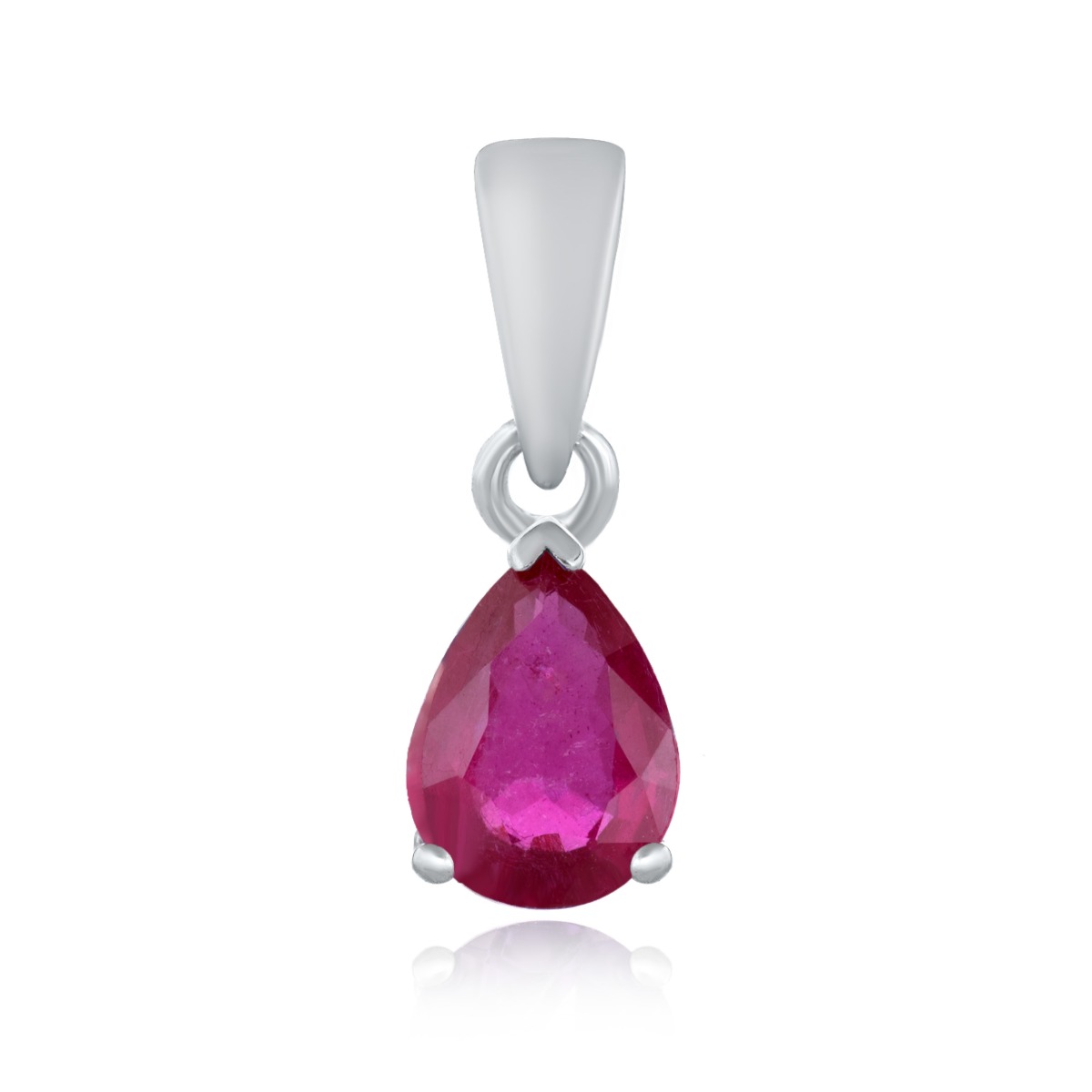 Изящна дамска висулка с елегантна изработка изцяло от родирано сребро, допълнено от сияен естествен рубин с форма на капка. Може да се комбинира с пръстен и обеци от същия модел. Всички бижута с естествени камъни са придружени от специален сертификат, удостоверяващ автентичността им. На този сертификат можем да изпишем и лично послание за Вас или за когото е бижуто.