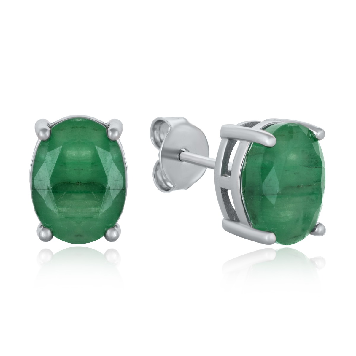 Ефектни дамски обеци с класически модел на изработка изцяло от родирано сребро, обгърнало магнетичен естествен изумруд. Обеците са с щифт закопчаване, бижута подходящи за всеки ден или по-специален повод. Поради семплия дизайн могат да се комбинират с други бижута с изумруди.