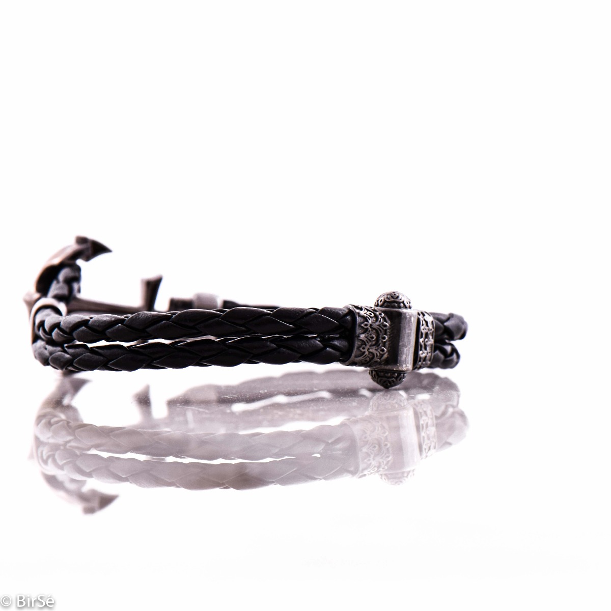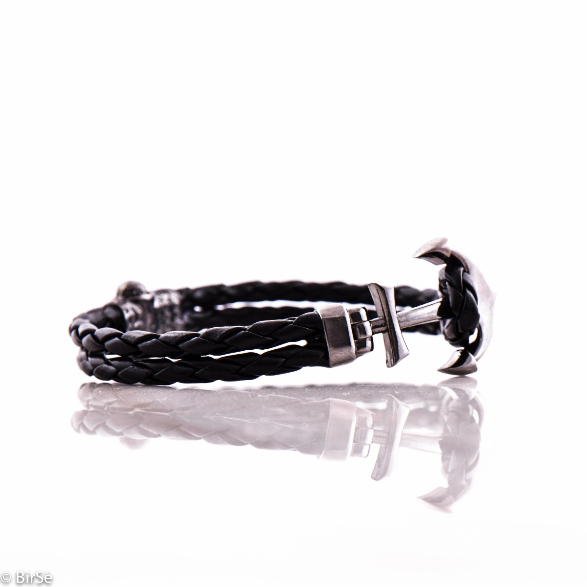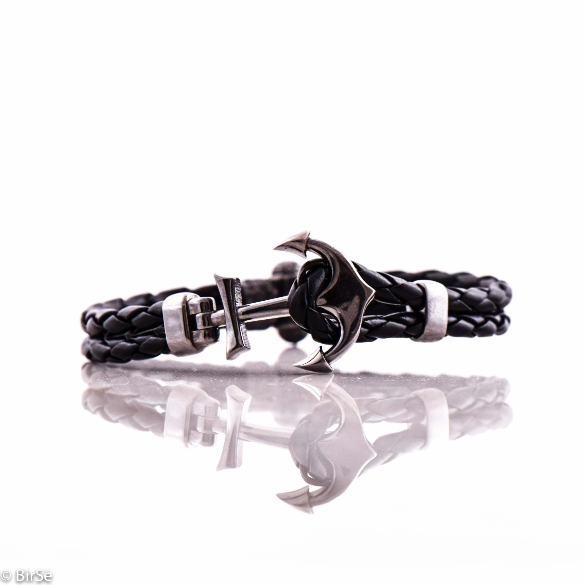Стилна гривна от естествена кожа с котва за господата, които са в крак с последните модни тенденции. Покритието й е от оксидирано сребро, а закопчалката - магнитна.