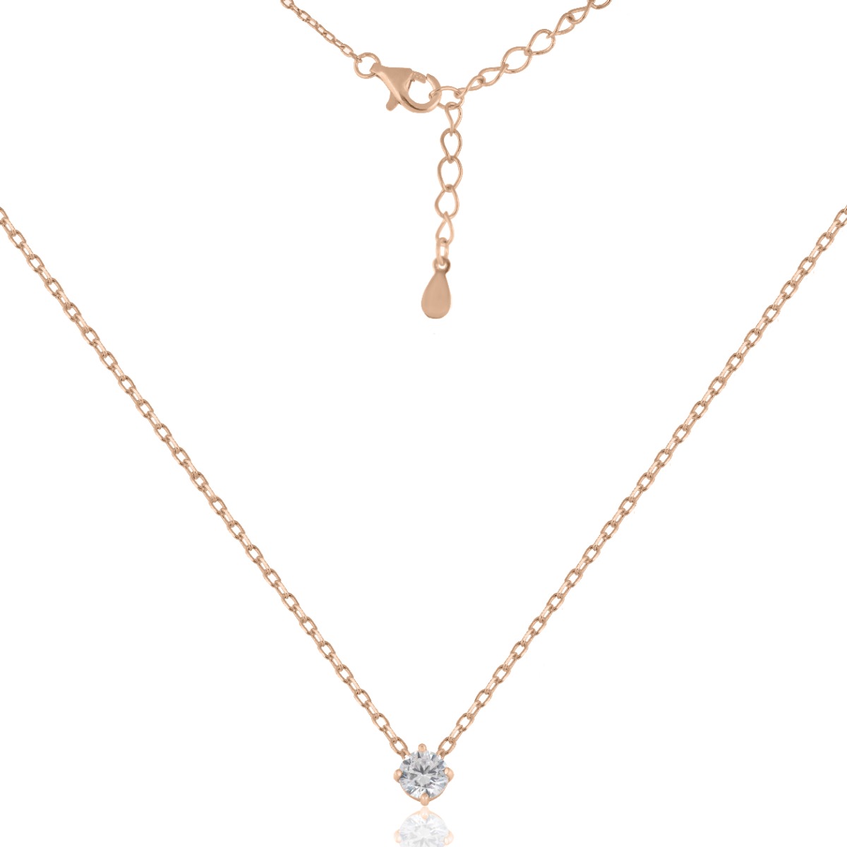 Сребърно колие с малко кръгло цирконче 4 мм – изработено от розово сребро 925 с регулируема дължина. Деликатен и фин акцент, който придава нежност и елегантен блясък на всяка визия.