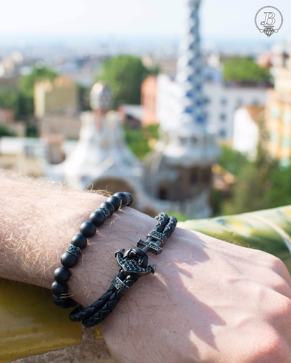 За господата с неангажиращ стил – гривна от естествена кожа, която е идеално допълнение на всяка визия. Нейното оксидирано сребърно покритие и композиция от черни циркони върху фигура на котва, придават изтънченост и завършеност на визията.