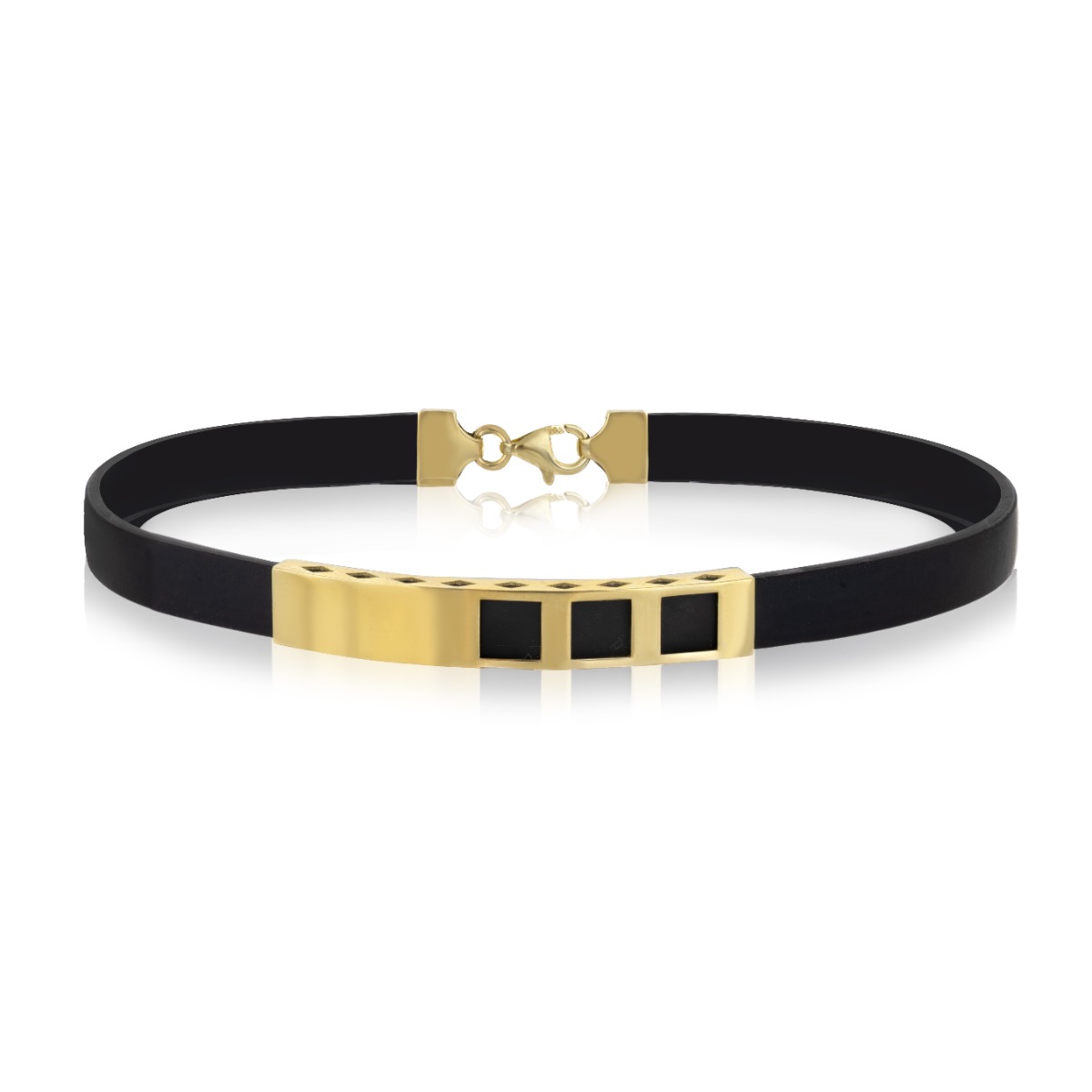 За мъжко съвършенство – гривна с каучук и плочка, изработена от блестящо класическо злато, с орнаменти. Страхотен избор за подарък за рожден ден на млад мъж.