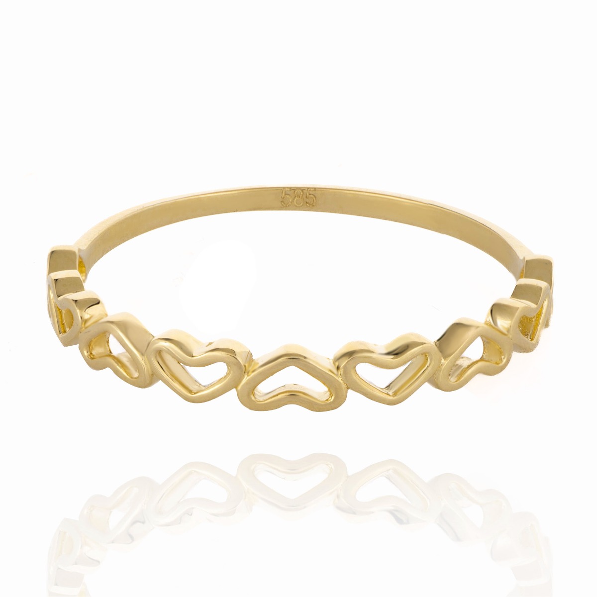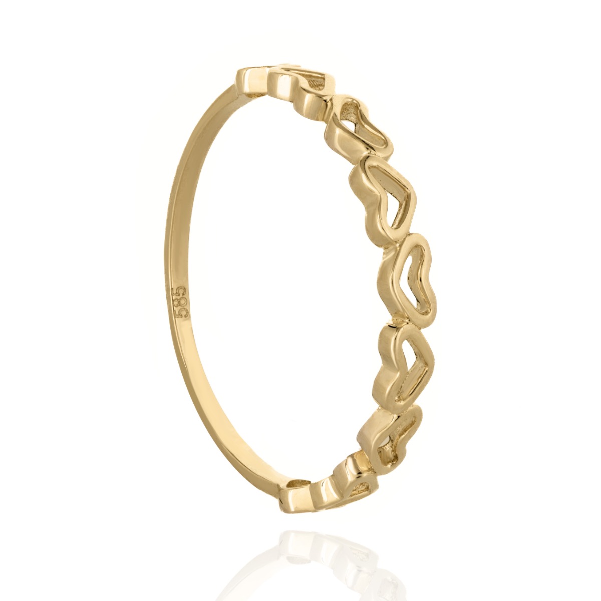 Изключителен златен пръстен с ефектна изработка и модерно оформен низ от сърца, нежно свързани помежду си. Идеалния подарък за нежните ръце на любимата жена.