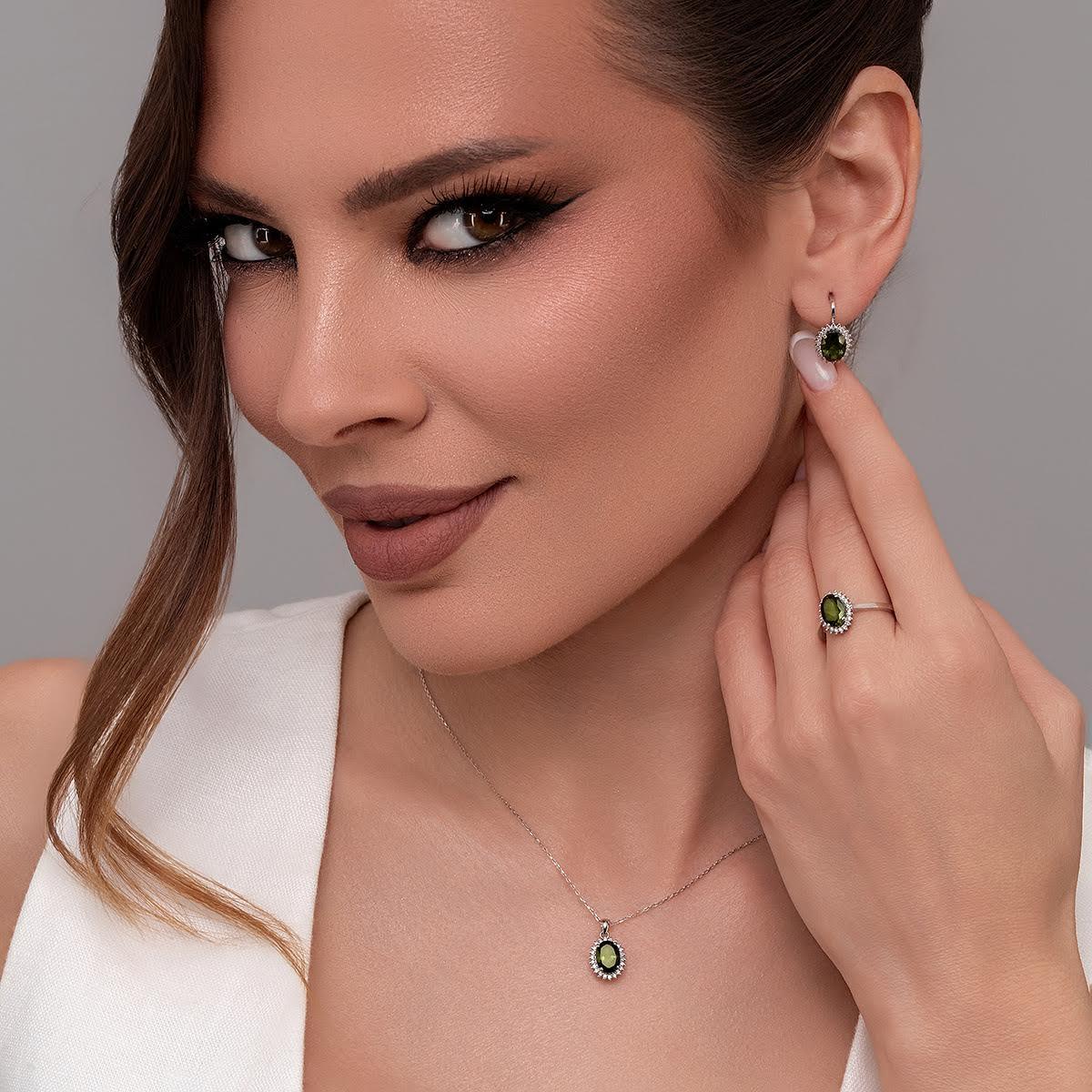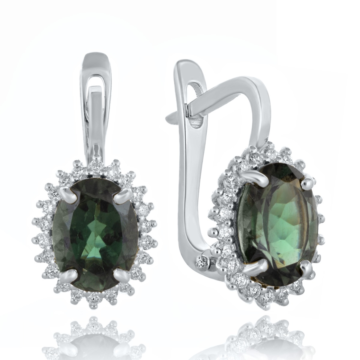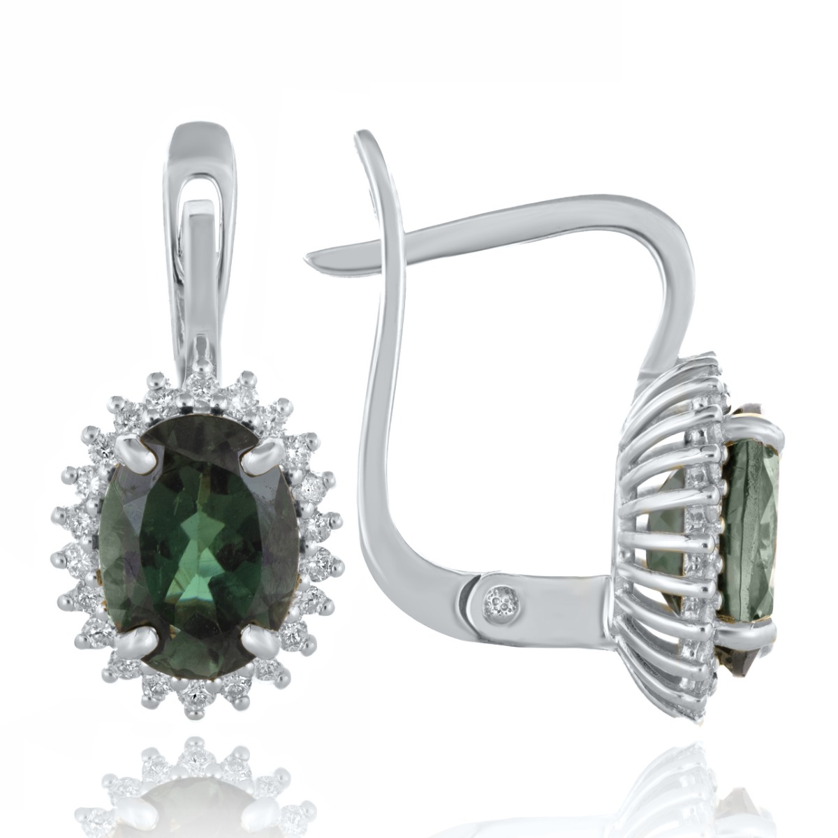 Стилни обеци модел ,,Маркиза" с английско закопчаване. Блестящи диаманти и уникален, магнетичен турмалин оформят пленително бижу. Прелестните диаманти са с честота SI. Обеците са част от комплект с висулка и елегантен пръстен. Всички бижута с естествени камъни са придружени от специален сертификат, удостоверяващ автентичността им. На този сертификат можем да изпишем и лично послание за Вас или за когото е бижуто. Вижте още информация тук.