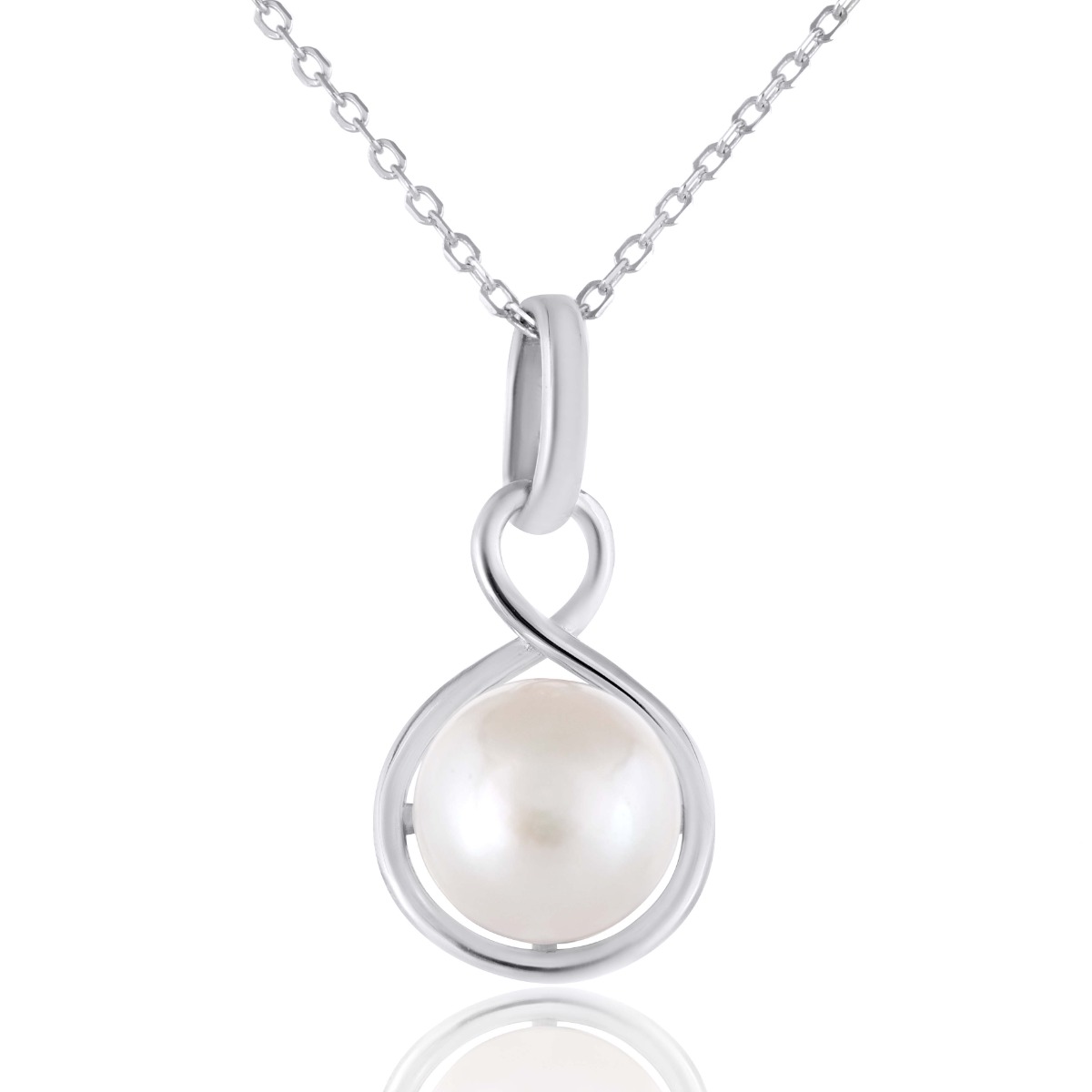 Това впечатляващо сребърно колие е въплъщение на изтънчена красота и вечна елегантност. Изработено от висококачествено родирано сребро, което не само придава ярък и дълготраен блясък, но и защитава метала от потъмняване, това бижу е идеален акцент за всяка визия. Сърцевината на дизайна е естествена бяла перла, символ на чистота и класа. Перлата е нежно обгърната от сребърна структура, оформена като безкрайност – символ на безграничната любов, хармония и вечност.