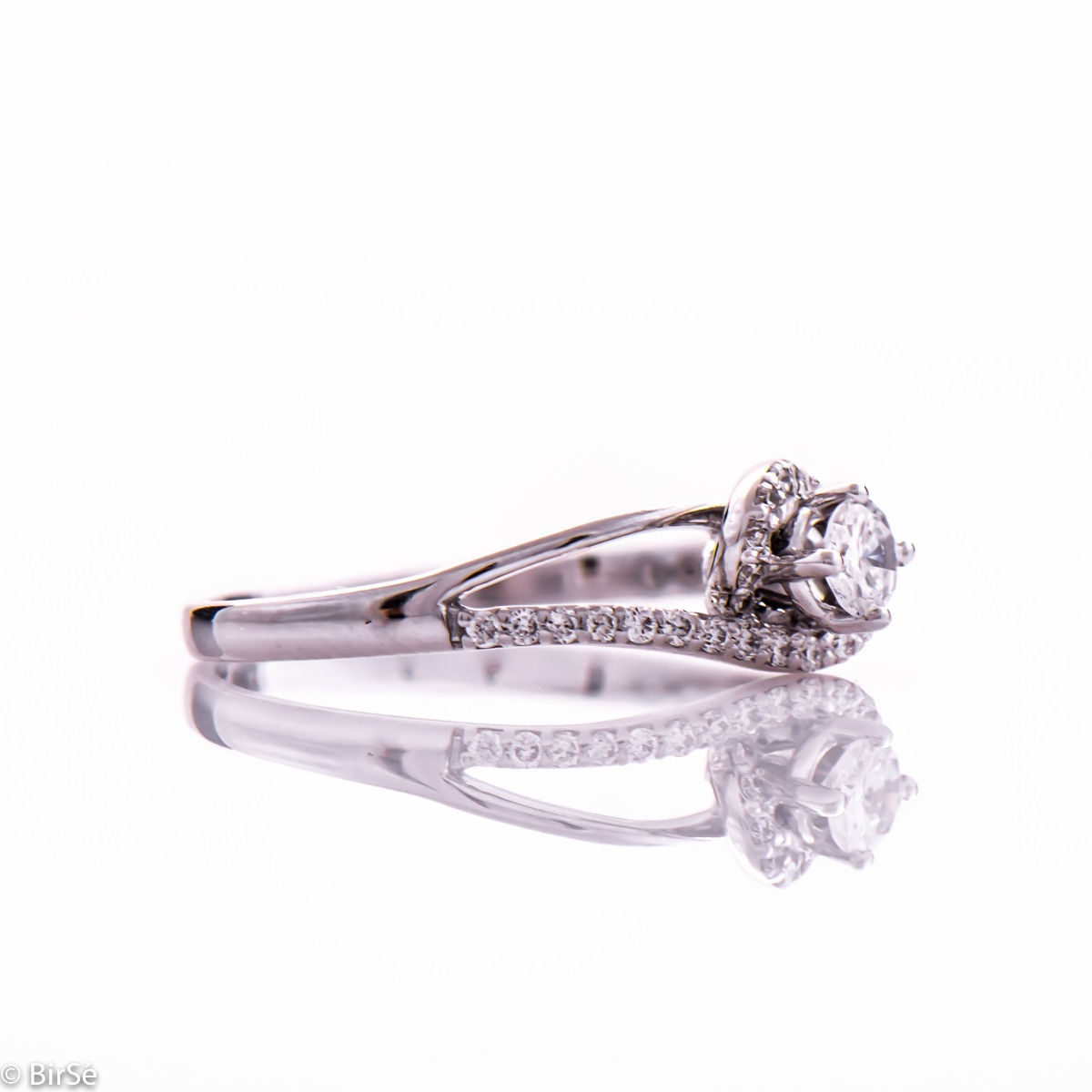 Деликатен избор за годеж с фино съчетание на бяло злато и нежен кръгъл диамант – брилянт.