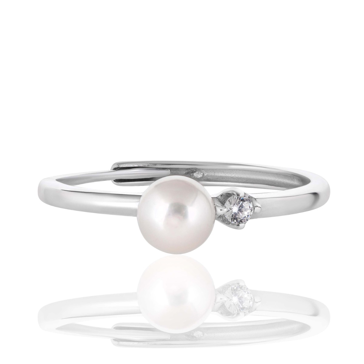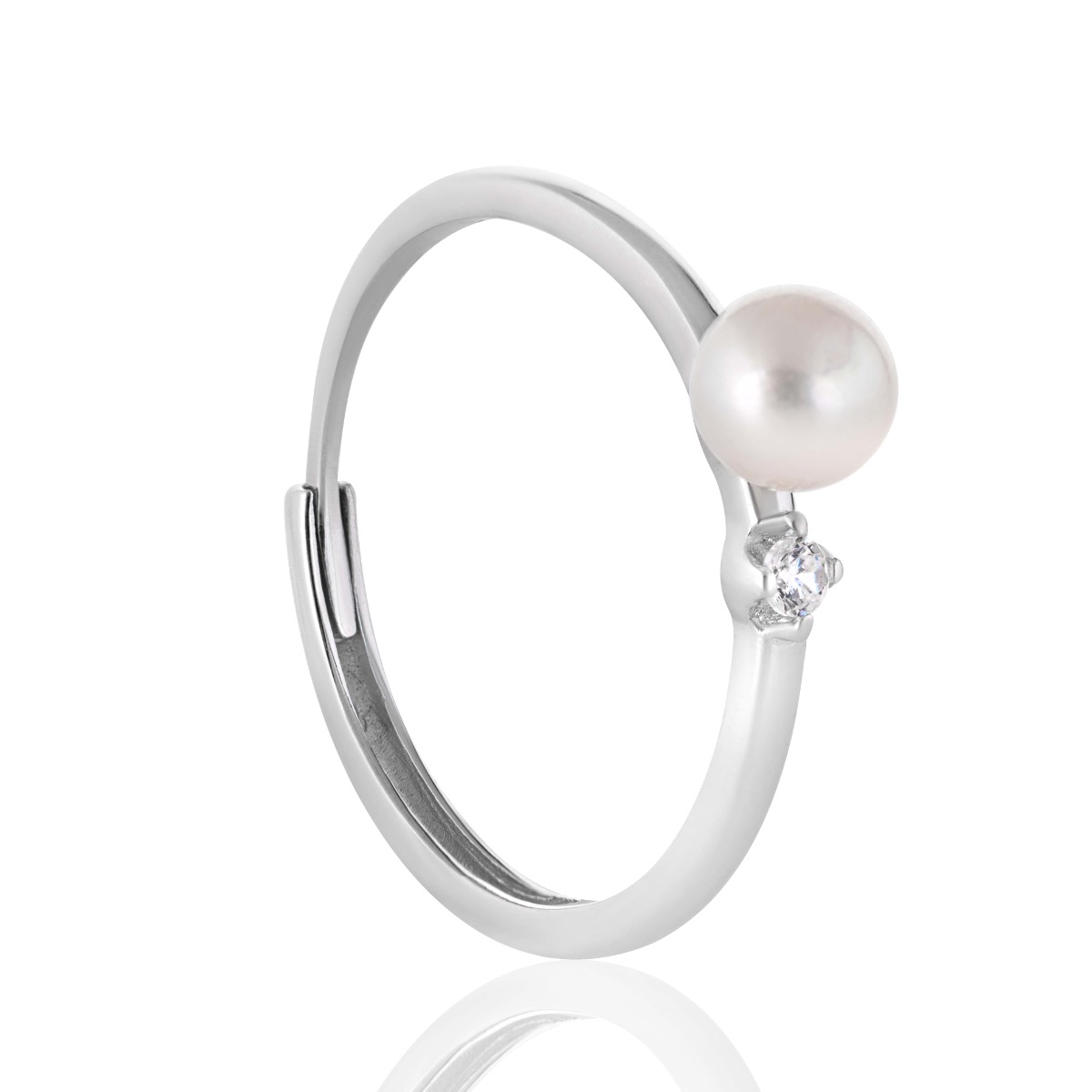 Стилен и удобен пръстен с регулируем размер, който комбинира изящество и практичност. В центъра е разположена бяла перла с диаметър 5,5 мм, а малко цирконче добавя фин блясък и подчертава елегантния дизайн на бижуто.