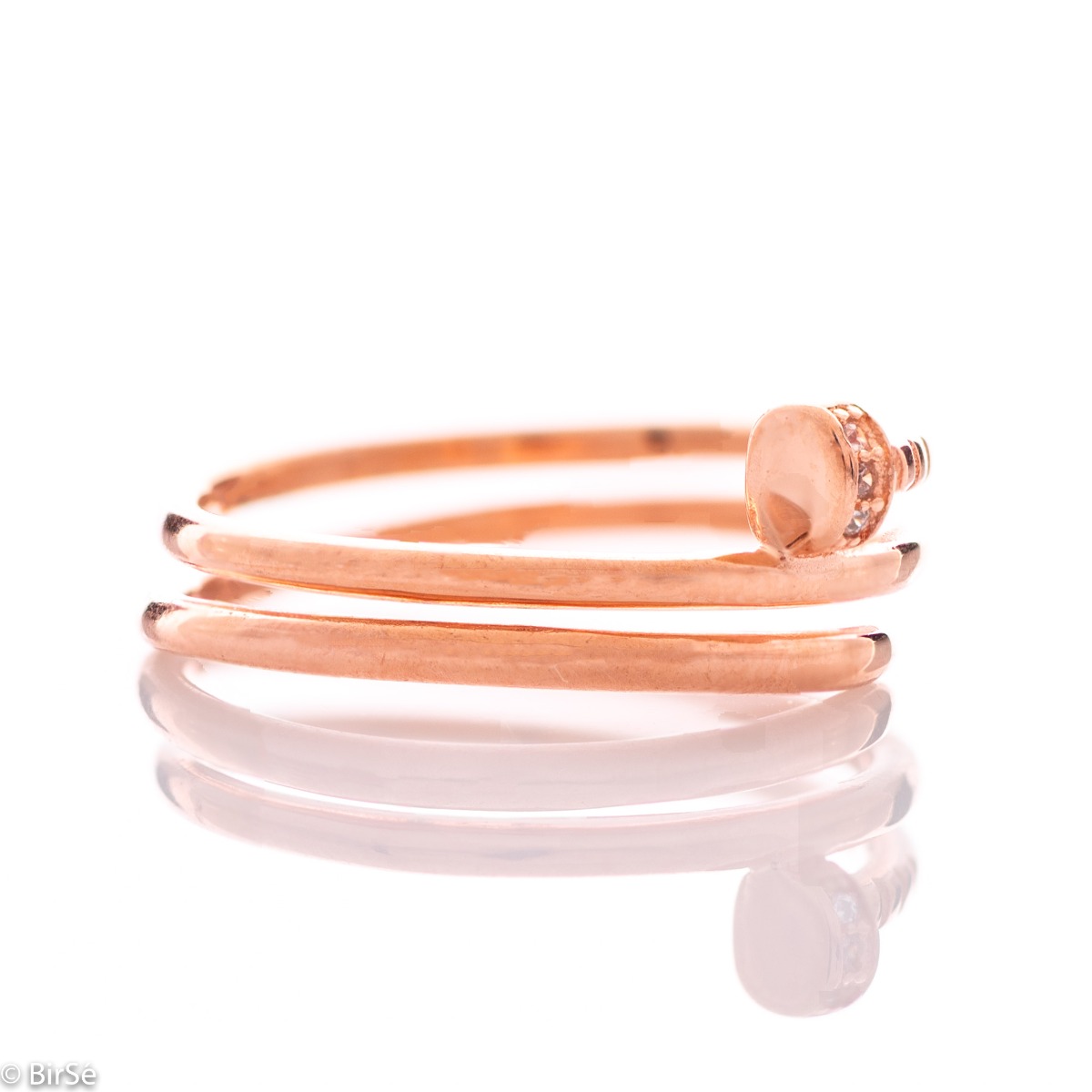 Изкусителен с модерния си стил и визия, този сребърен пръстен - пирон е търсено и предпочитано бижу от много млади момичета или дами със стил. Мекотата на розовото сребро е само още един плюс за бижуто. Всички бижута са подаръчно опаковани и придружени от сертификат за качество и гаранция.