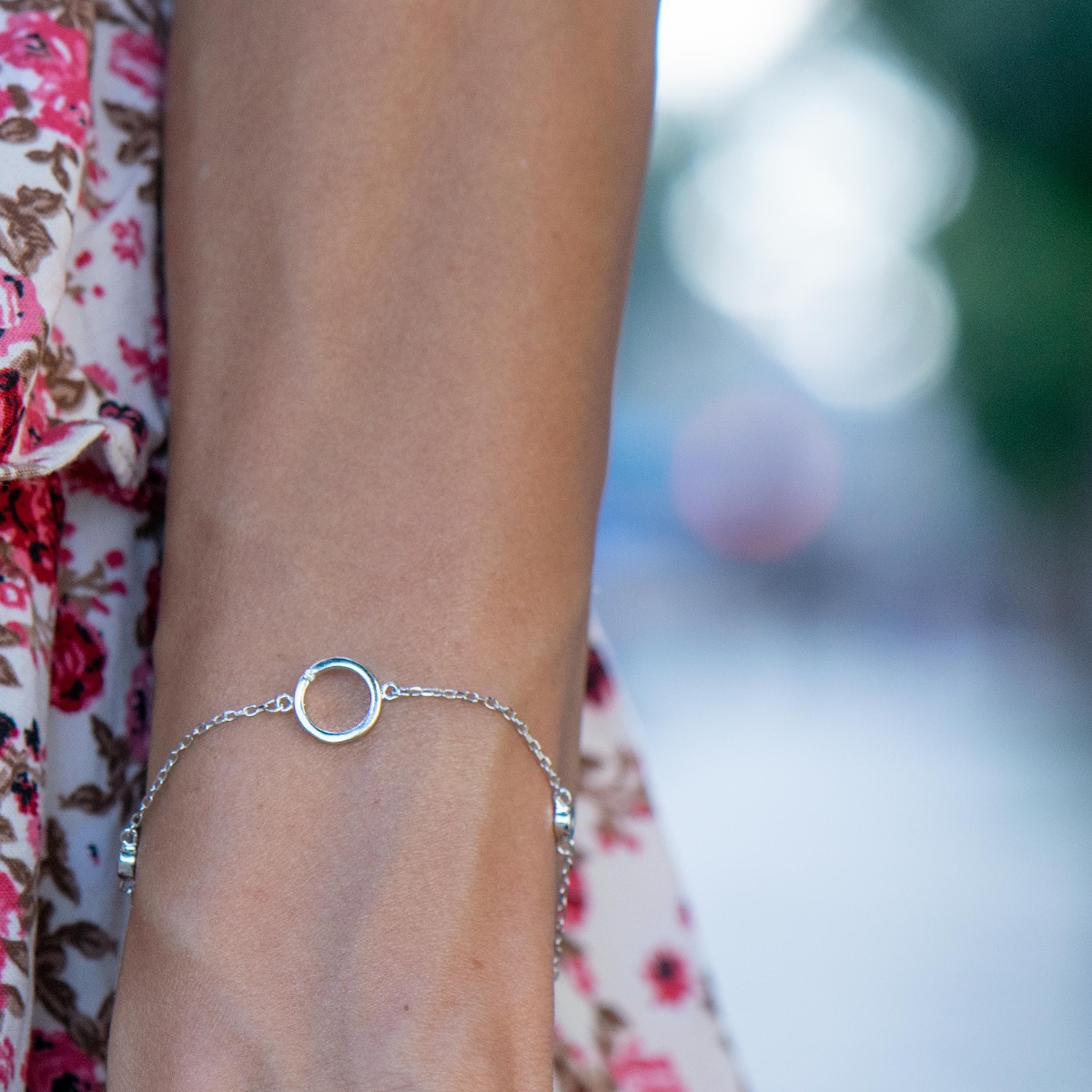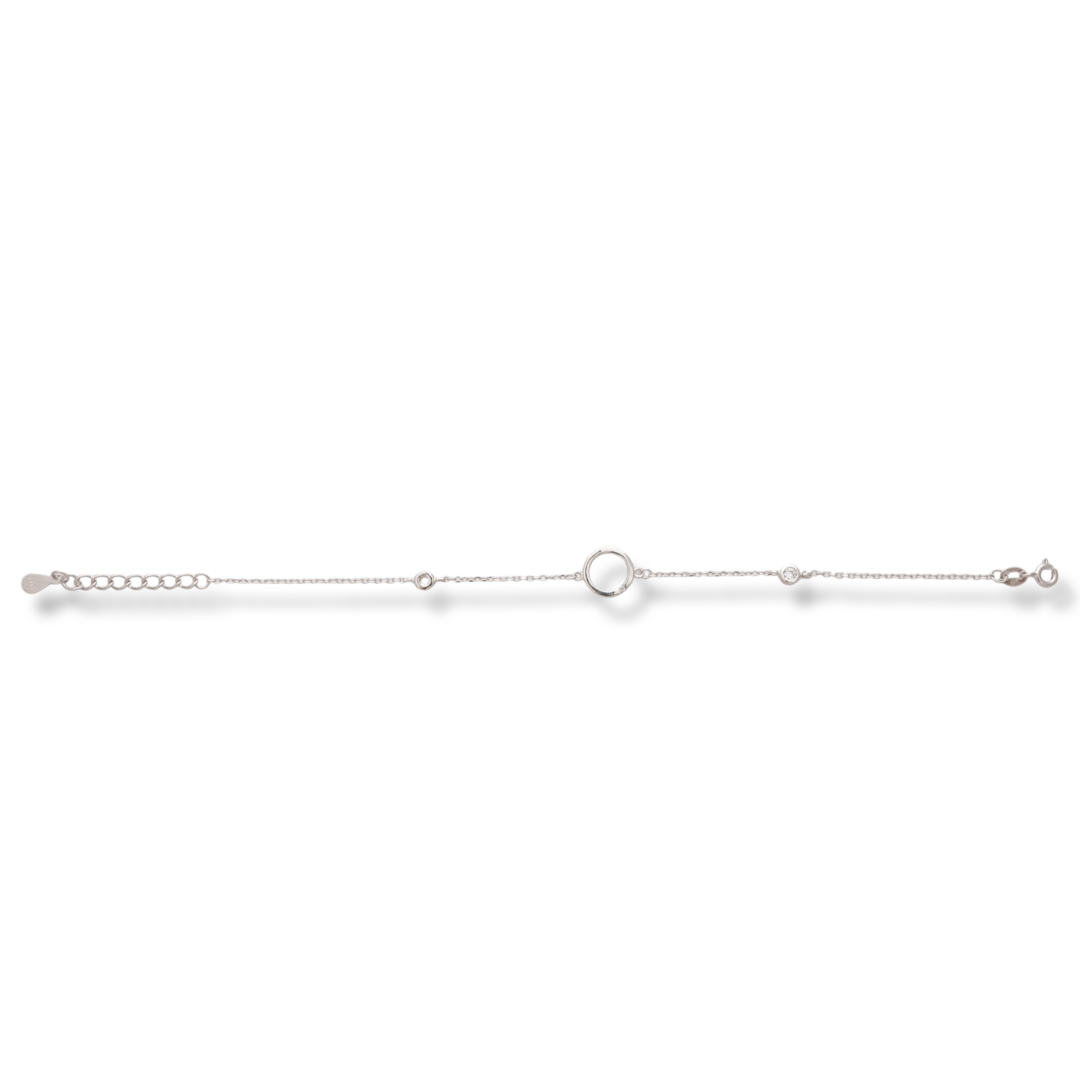 Елегантна дамска гривна от нежно сребро с изящна изработка, украсена с фини елементи и бляскави циркони. Гривната е с удължител, за по-голямо удобство при регулиране на дължината.