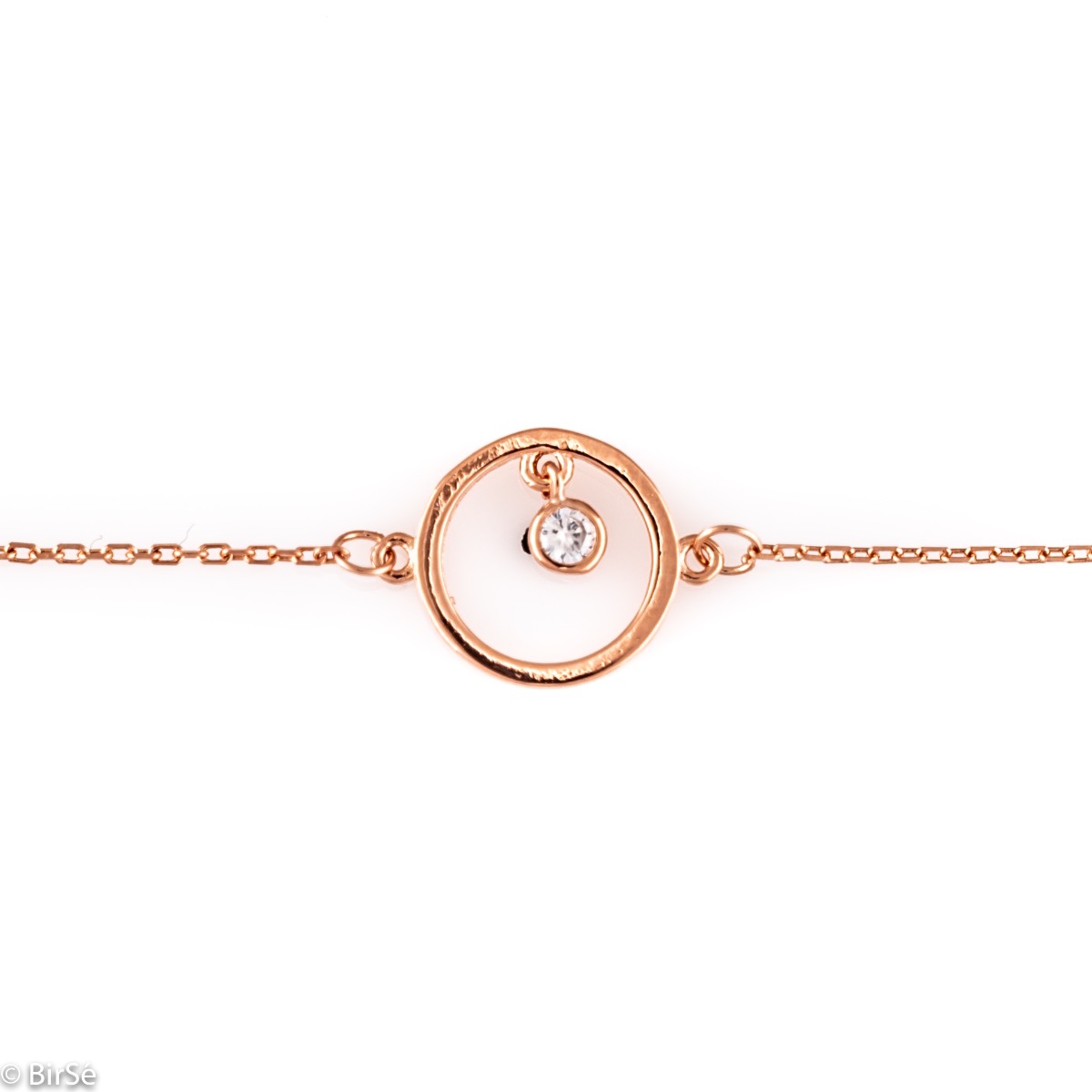 Нежна мека гривна с бляскави циркони и изящна изработка изцяло от родирано розово сребро.
