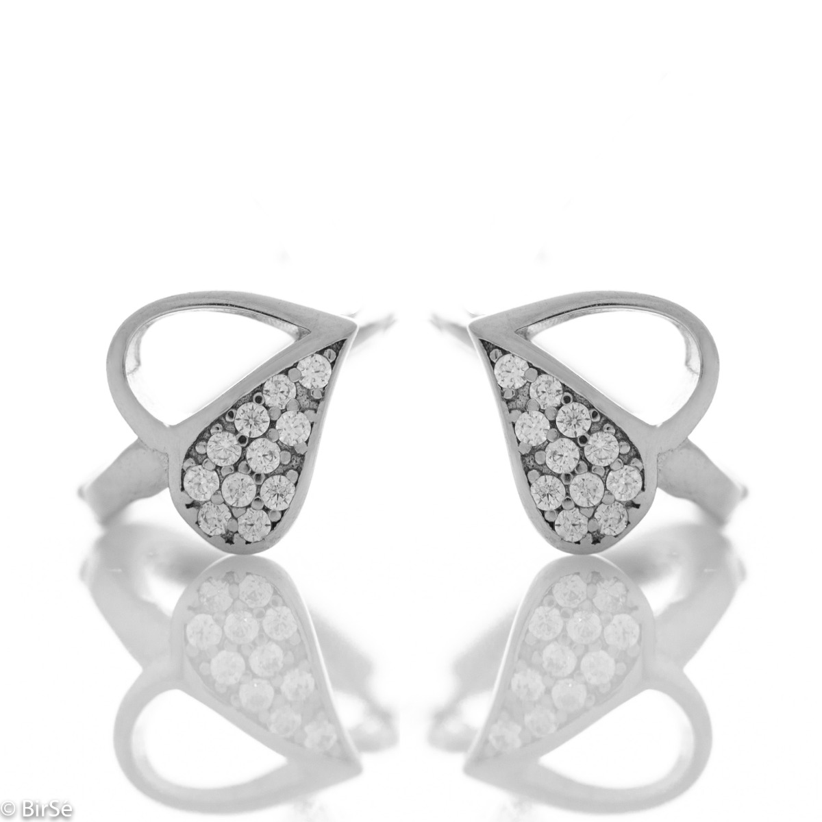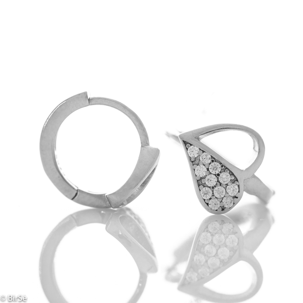Малки елегантни сребърни обеци - халки с интересно оформление на детайлите във форма на листо, наполовина украсено с бляскави циркони. Закопчаването е изключително удобно и подходящо за малки деца. Всички бижута са подаръчно опаковани и придружени от сертификат за качество и гаранция.