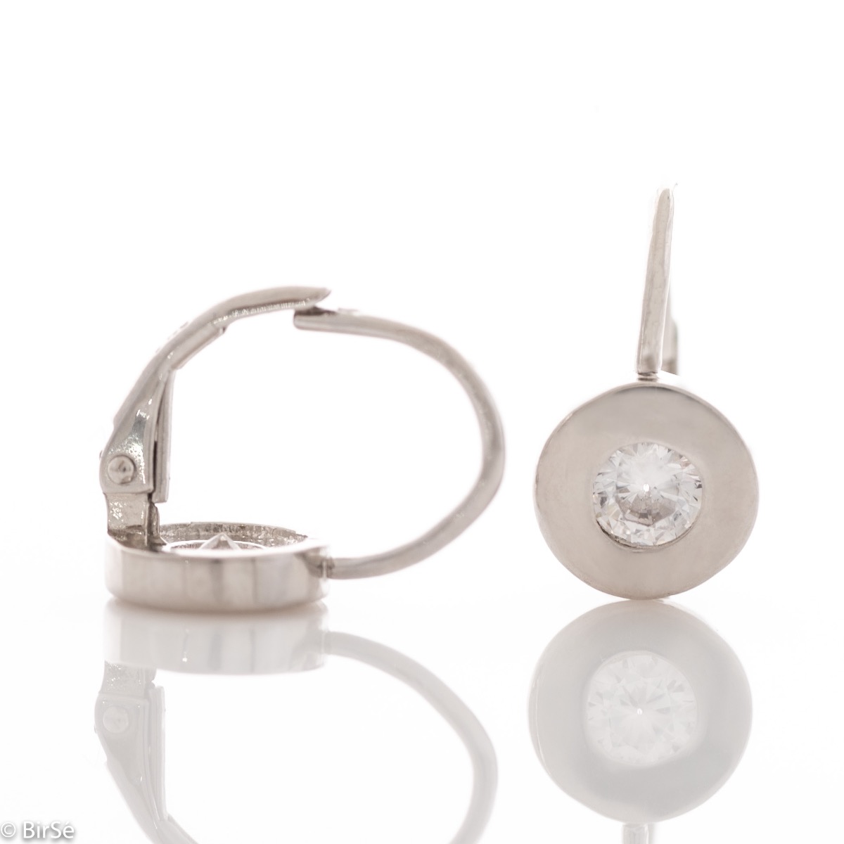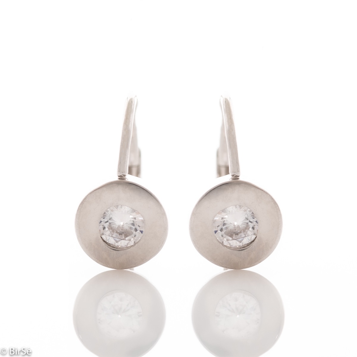 Елегантни, леко висящи сребърни обеци със закопчаване тип върбило и нежна изработка изцяло от родирано сребро, в съчетание с бляскав централен циркон. Всички бижута са подаръчно опаковани и придружени от сертификат за качество и гаранция.