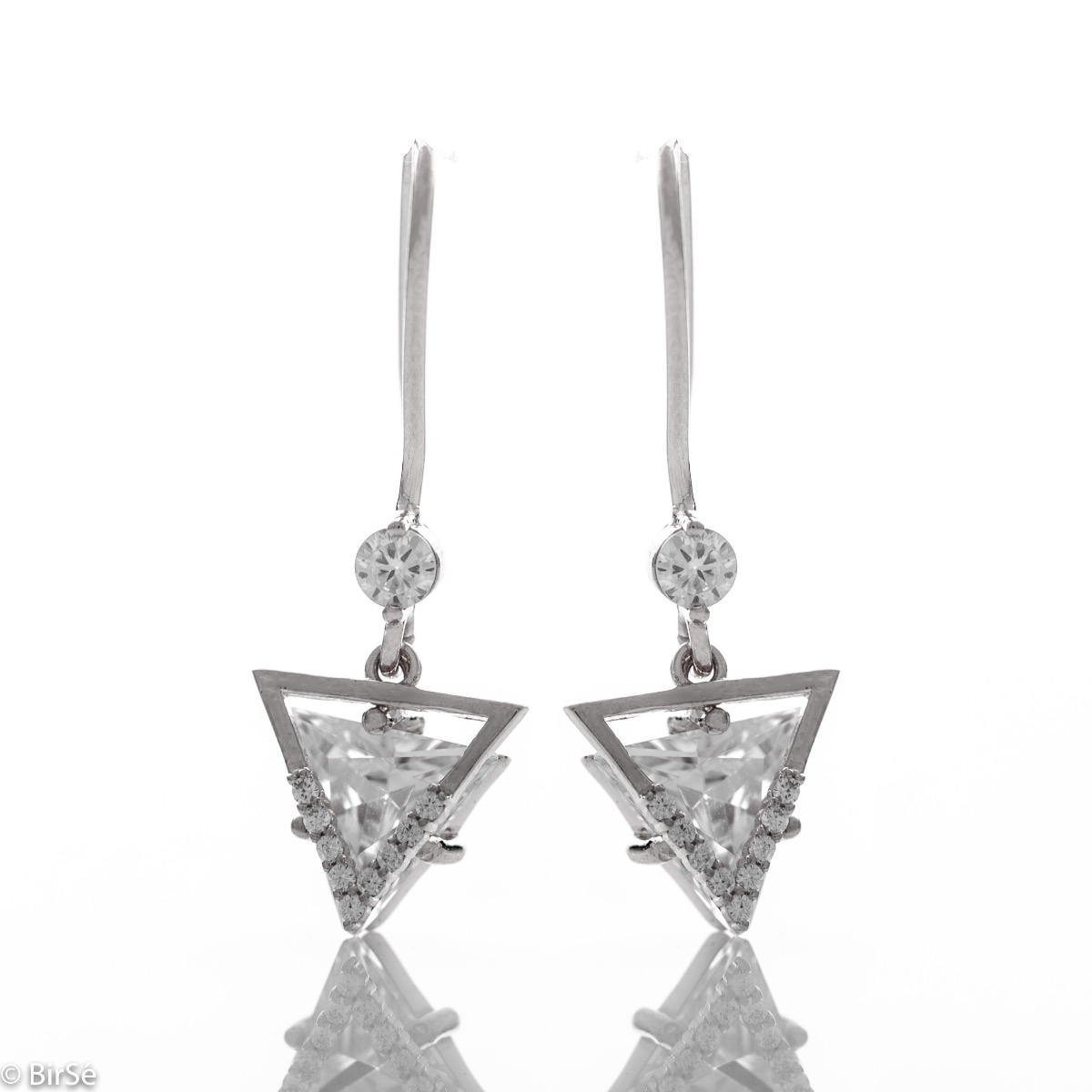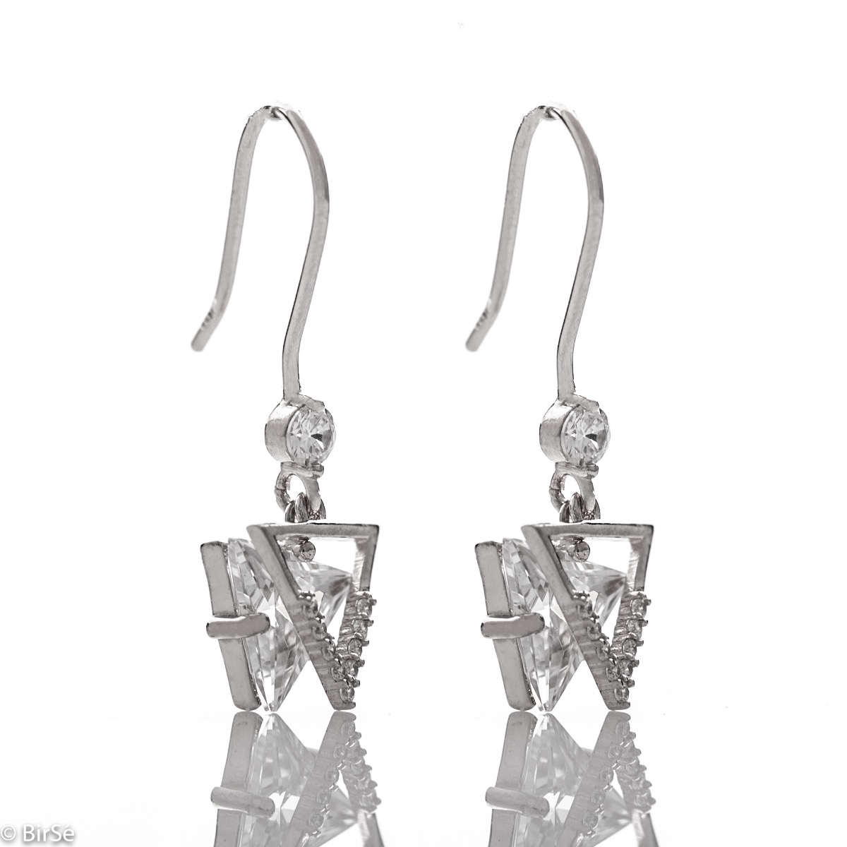 Изящни сребърни обеци със закопчаване тип върбило и висящи елементи. Ефектна изработка съчетаваща родирано сребро с бляскави циркони. Всички бижута са подаръчно опаковани и придружени от сертификат за качество и гаранция.