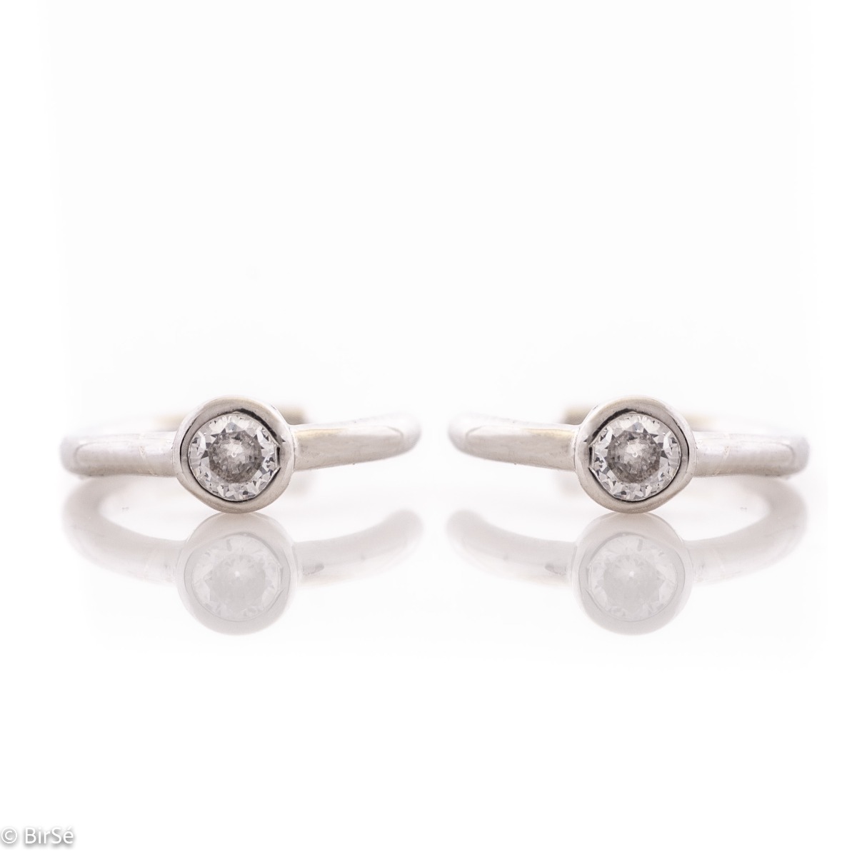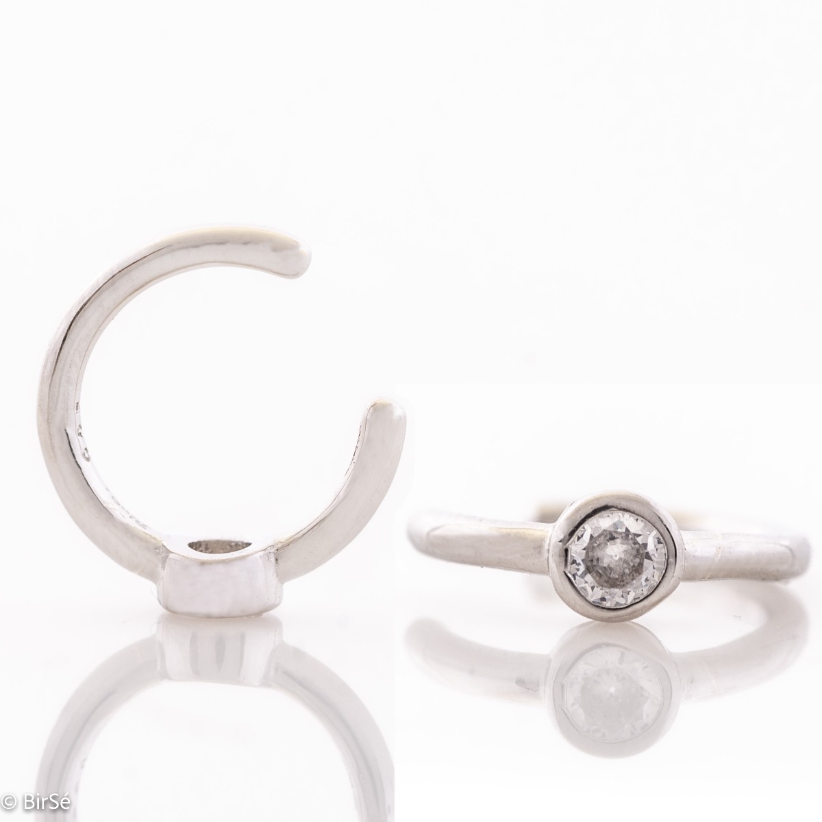 Нежни дамски обеци с фина изработка от родирано сребро, украсени единствено с едно изящно цирконче. Обеците са предназначени за закрепване на хрущяла на ухото без да е необходимо продупчване.