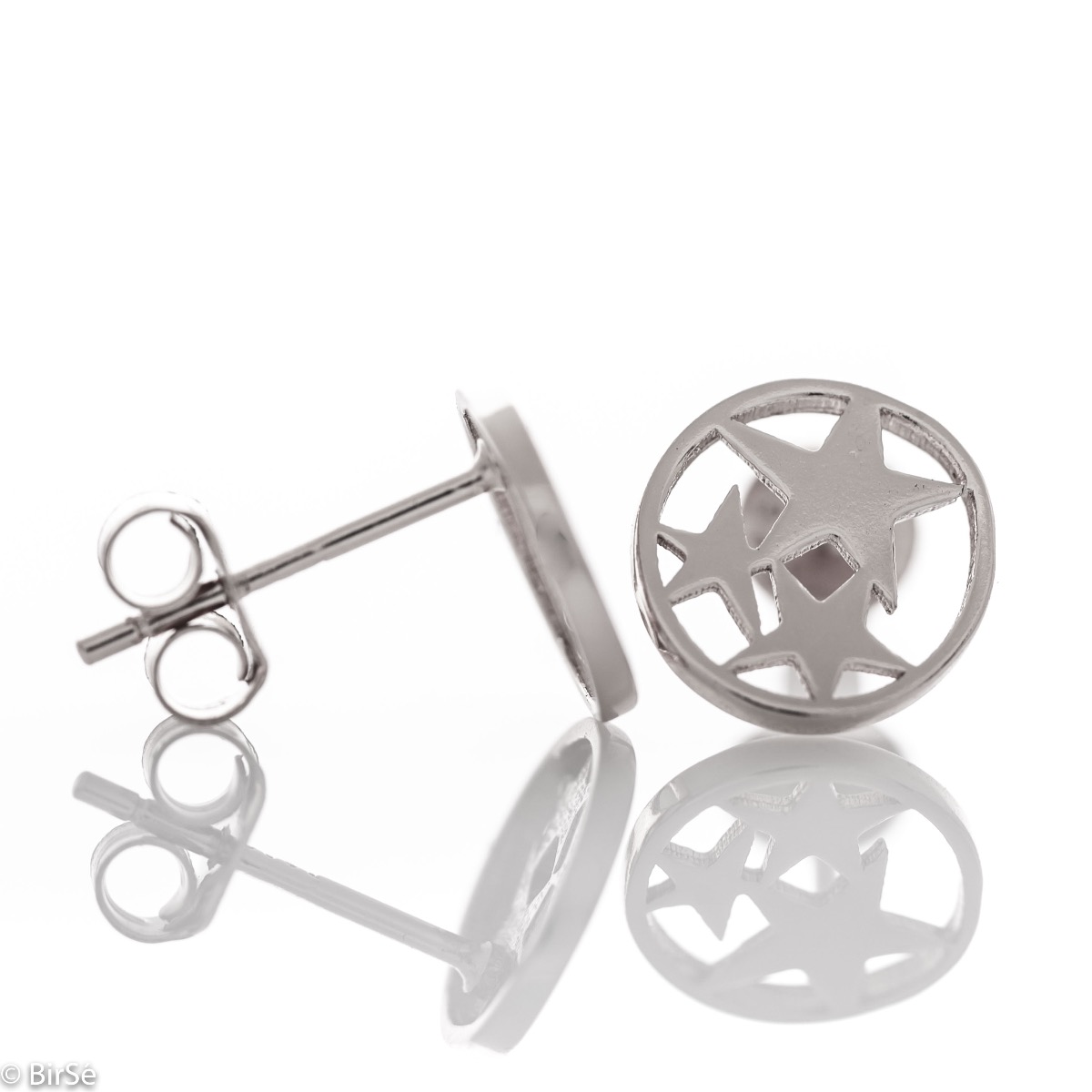 Ефектни дамски обеци на щифт, съчетаващи многобройни красиви звездички с фина изработка изцяло от родирано сребро.