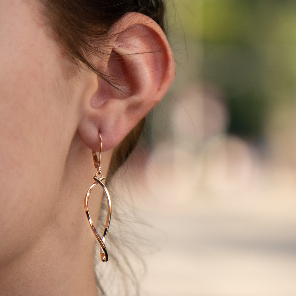 Ефектна изработка на висящи обеци с върбило закопчаване и стилен дизайн от розово сребро, елегантно преплетено в очарователен модел.