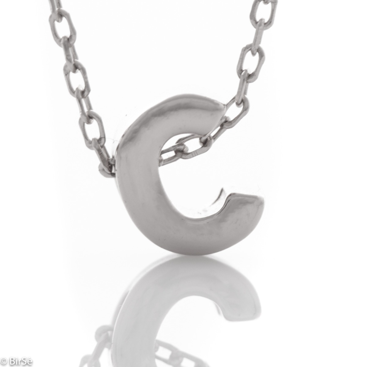 Изтънчена изработка на дамско колие от родирано сребро с буква С. Нежно и ефектно бижу, семпло и умело съчетаващо се с всякакви бижута от сребро.