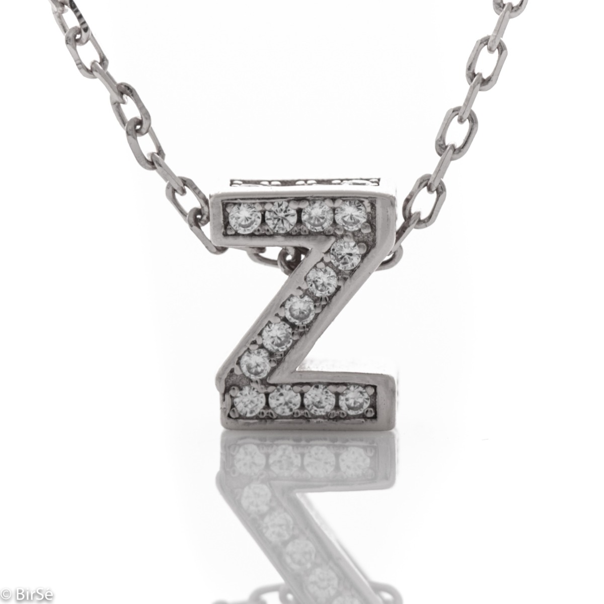 Атрактивно и впечатляващо с нежната си изработка колие от родирано сребро - буква Z. Нежната мекота на среброто и отблясъците на цирконите грабват погледите и превръщат колието в едно мечтано от всяка дама бижу.