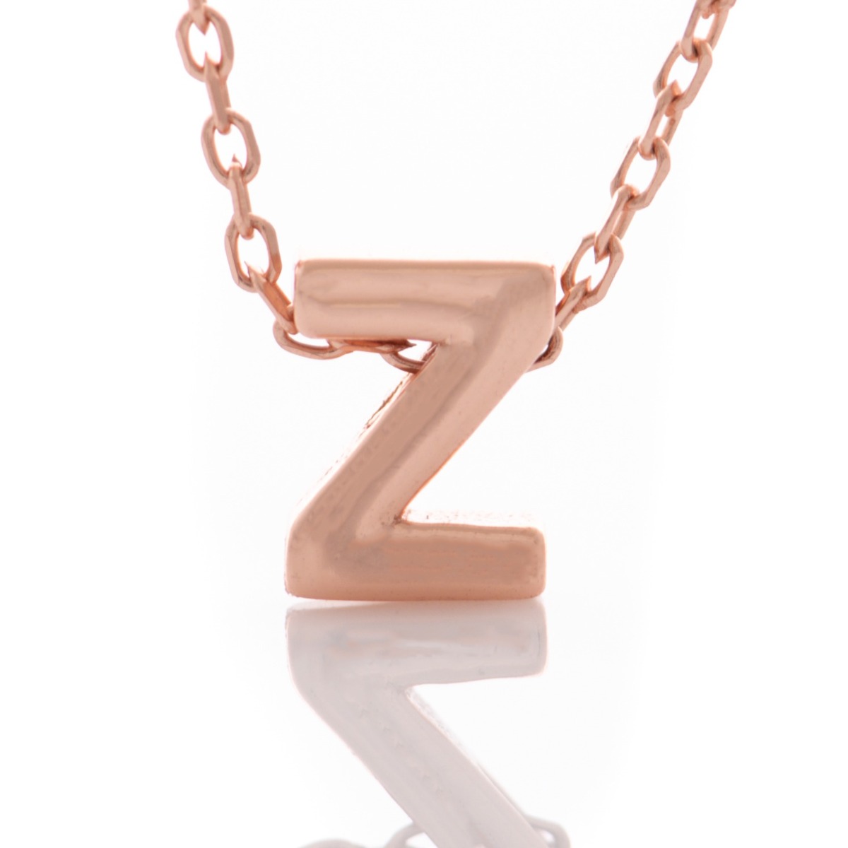 Изтънчена изработка на дамско колие от розово сребро с буква Z. Нежно и ефектно бижу, семпло и умело съчетаващо се с всякакви бижута от розово сребро.