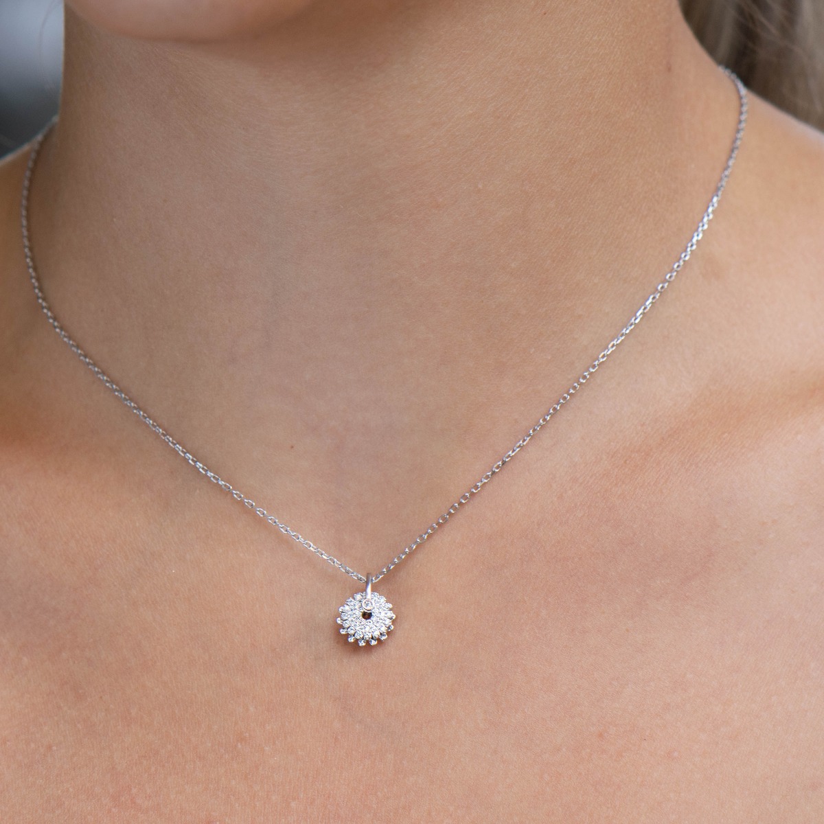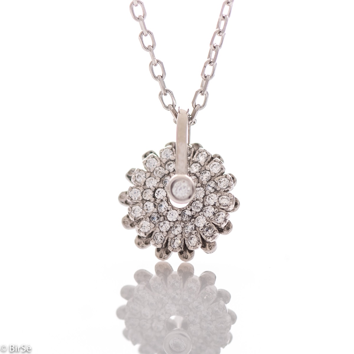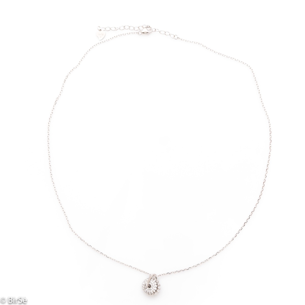Елегантно и ефектно сребърно колие с нежна изработка изцяло от родирано сребро и два фини елемента, допълнени от бляскави циркони. Всички бижута са подаръчно опаковани и придружени от сертификат за качество и гаранция.