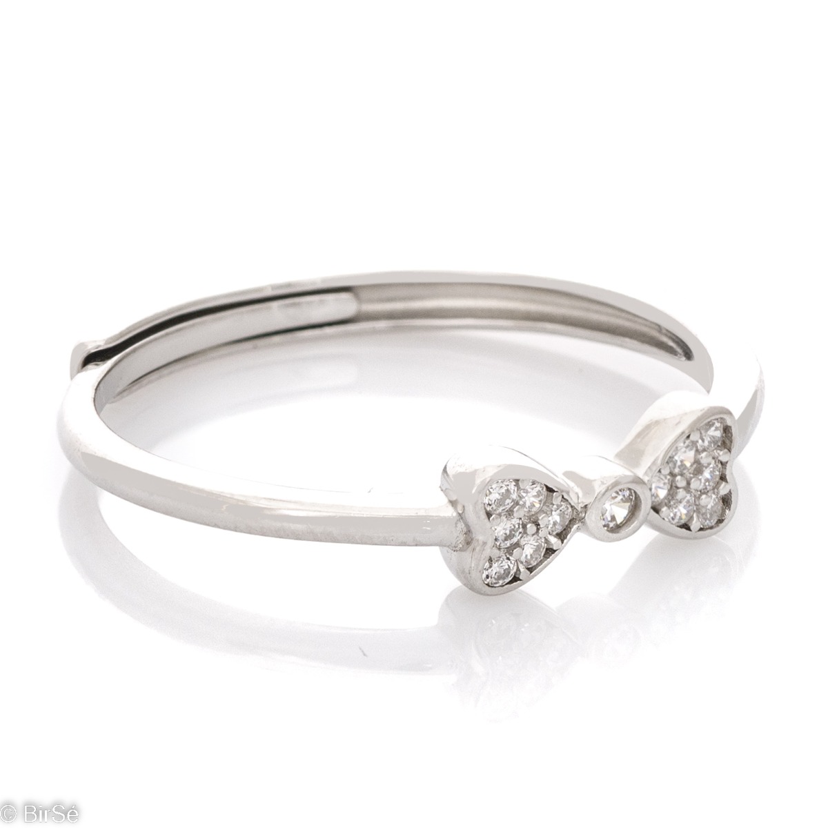 Нежно-елегантен сребърен пръстен с форма изящна панделка. Стилна изработка на композиционните елементи и детайли от фино преливане на родирано сребро с блясъка на циркони. Подходящ е за комбиниране със сребърни обици и висулки с циркони.