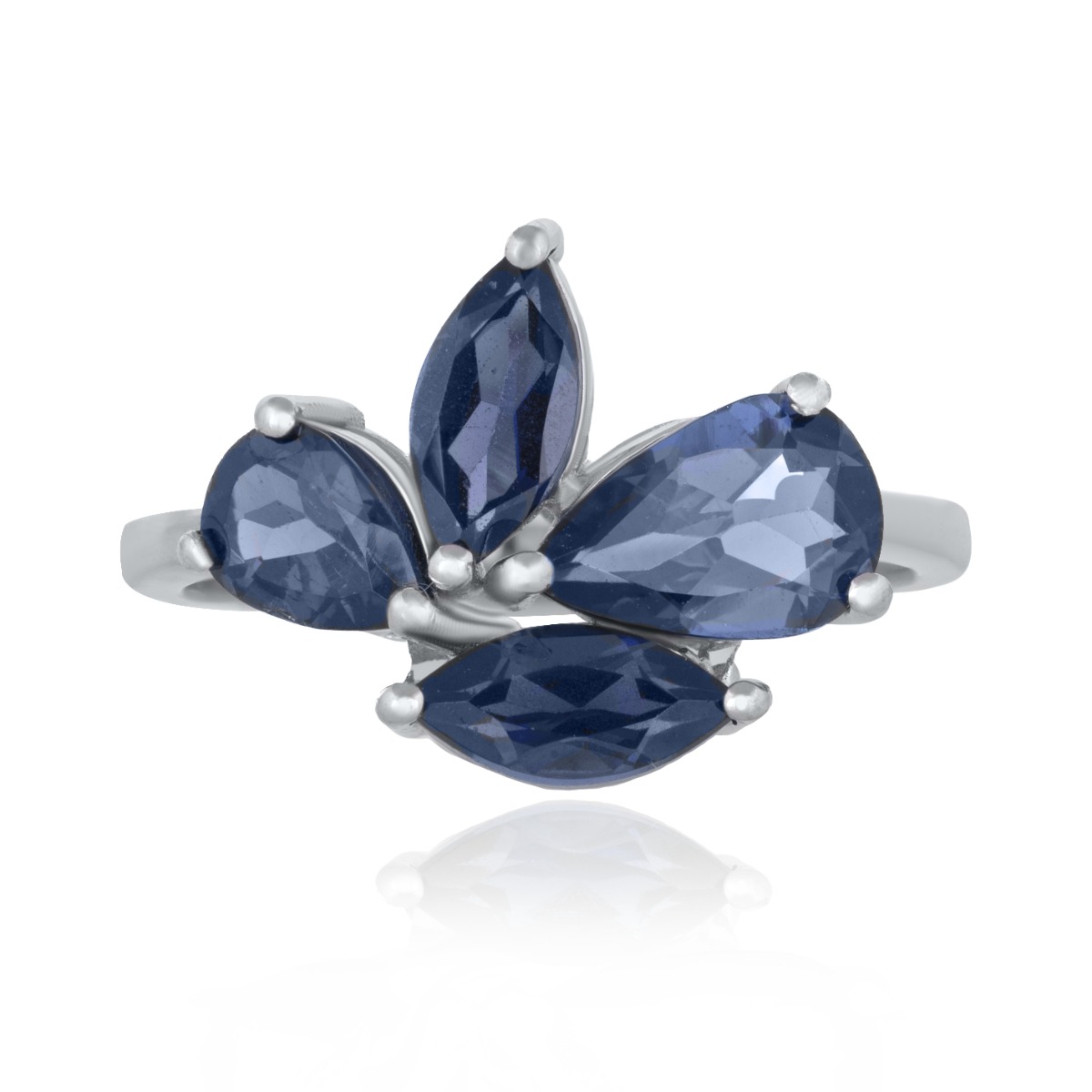 Ефектен дамски пръстен ,,Нощни Цветя" - модерна и красива изработка от родирано сребро, преплетено с магията на естествени камъни сапфир под формата на екзотично цвете. Всички бижута с естествени камъни са придружени от специален сертификат, удостоверяващ автентичността им. На този сертификат можем да изпишем и лично послание за Вас или за когото е бижуто. Вижте още информация тук.