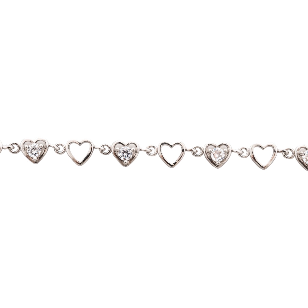 Изящно изработена дамска гривна, с елегантно оформени детайли от родирано сребро. Низ от елегантни сърчица оформя бижу, достойно за всяка дама, а в края има допълнителна верижка за регулиране на дължината. Подходящото бижу за подарък на Вашата любима.
