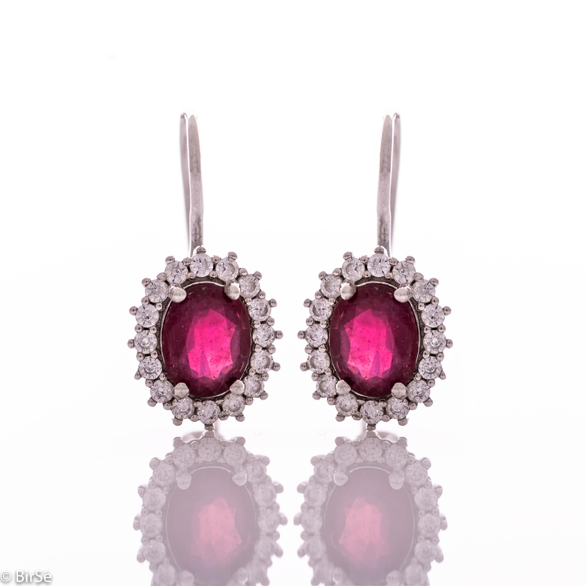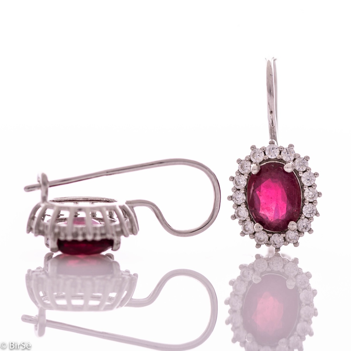Изключителни дамски обеци с изящна изработка съчетаваща нежно родирано сребро със сияен естествен рубин, обгърнат от бляскави циркони.Всички бижута с естествени камъни са придружени от специален сертификат, удостоверяващ автентичността им. На този сертификат можем да изпишем и лично послание за Вас или за когото е бижуто. Вижте още информация тук.