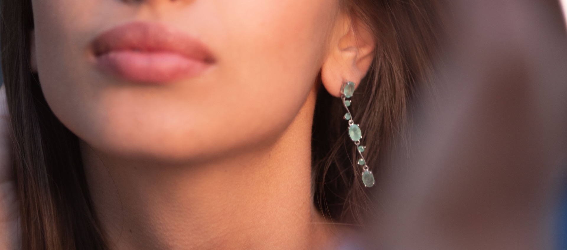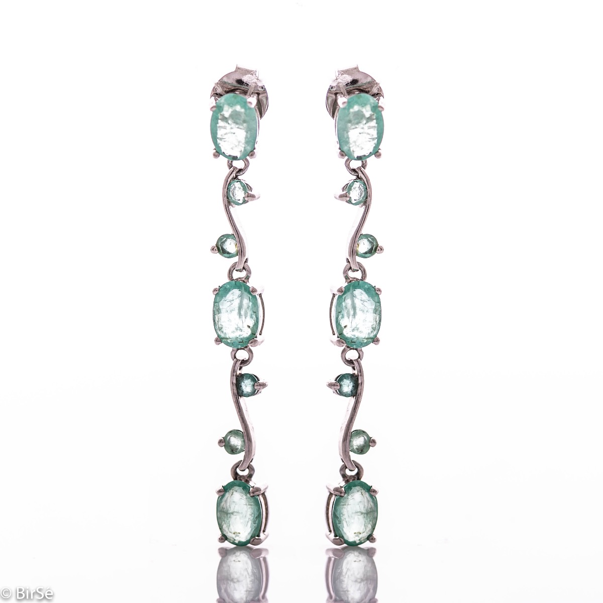 Изключително ефектни висящи обеци с нежна изработка съчетаваща многобройни естествени камъни изумруд с бляскаво родирано сребро. Всички бижута с естествени камъни са придружени от специален сертификат, удостоверяващ автентичността им. На този сертификат можем да изпишем и лично послание за Вас или за когото е бижуто. Вижте още информация тук.