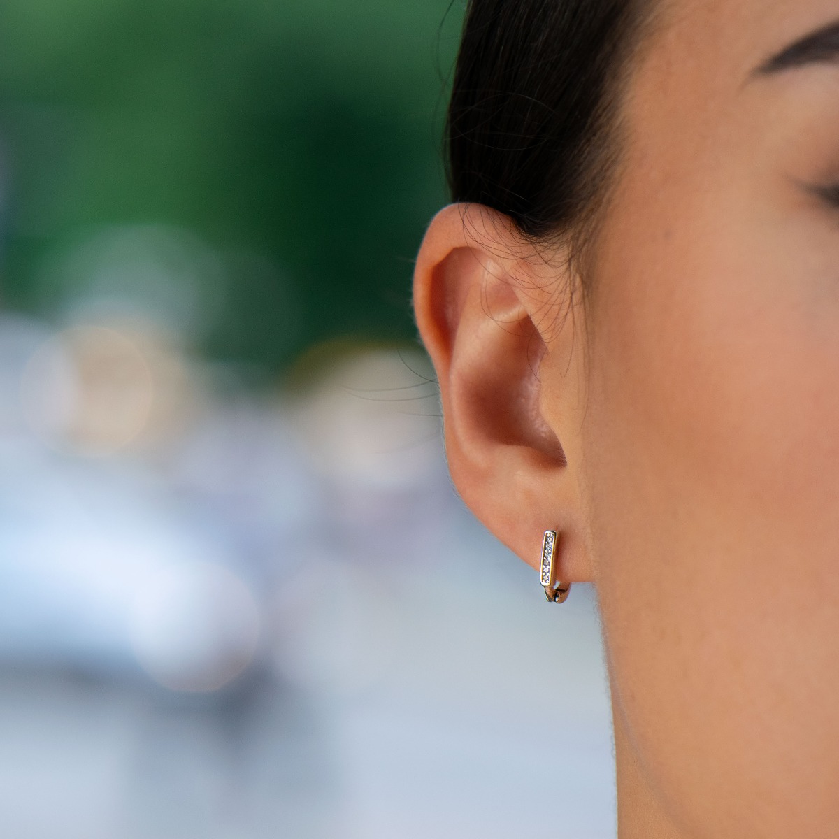 Грациозни дамски обеци, изработени от родирано фино сребро. Обеците са украсени от ослепителни циркони, със стилен дизайн и удобно английско закопчаване. Подходящо бижу за Вашето ежедневие.