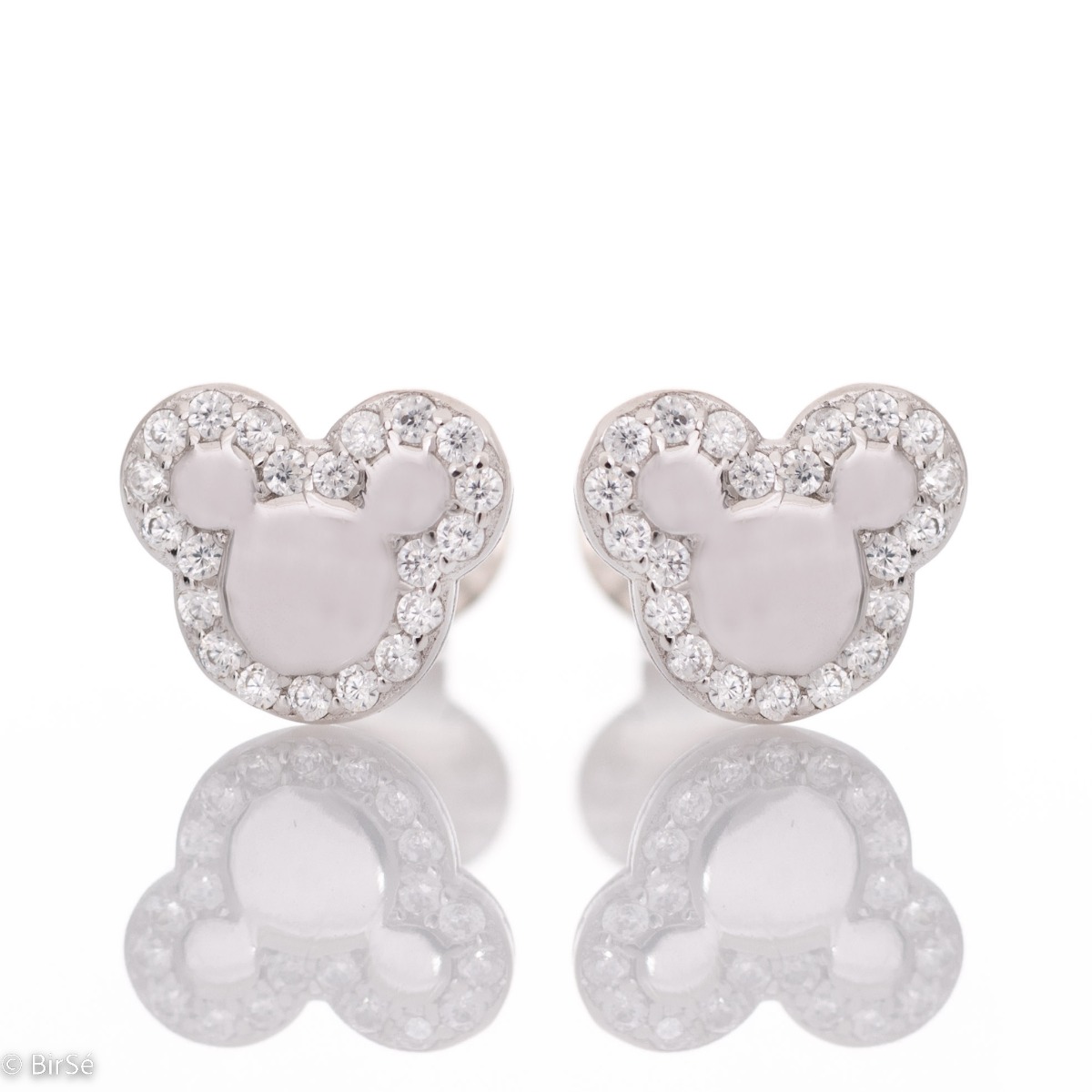 Очарователни обеци с форма на ушички, изработени от родирано сребро с безброй бляскащи циркони. Закопчаването с щифт е сигурно и удобно, а обеците са подходящ подарък и за малки момиченца.