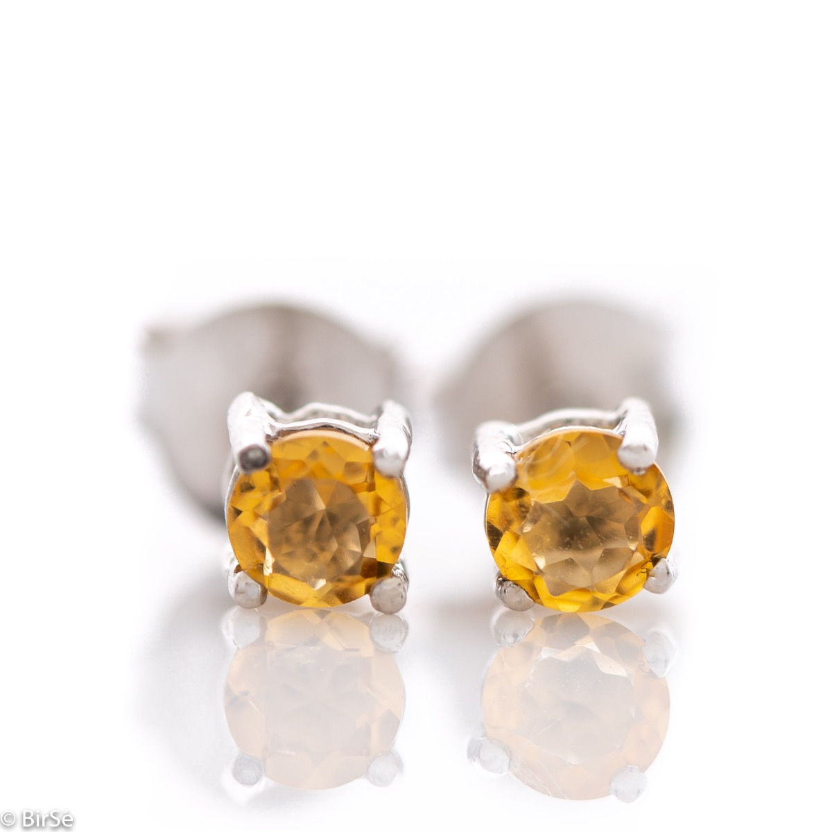 Нежни обеци на щифт с прецизна изработка от красиво родирано сребро, допълнено от фин и сияен естествен камък цитрин. Подходящи и за деца. Всички бижута с естествени камъни са придружени от специален сертификат, удостоверяващ автентичността им. На този сертификат можем да изпишем и лично послание за Вас или за когото е бижуто. Вижте още информация тук.