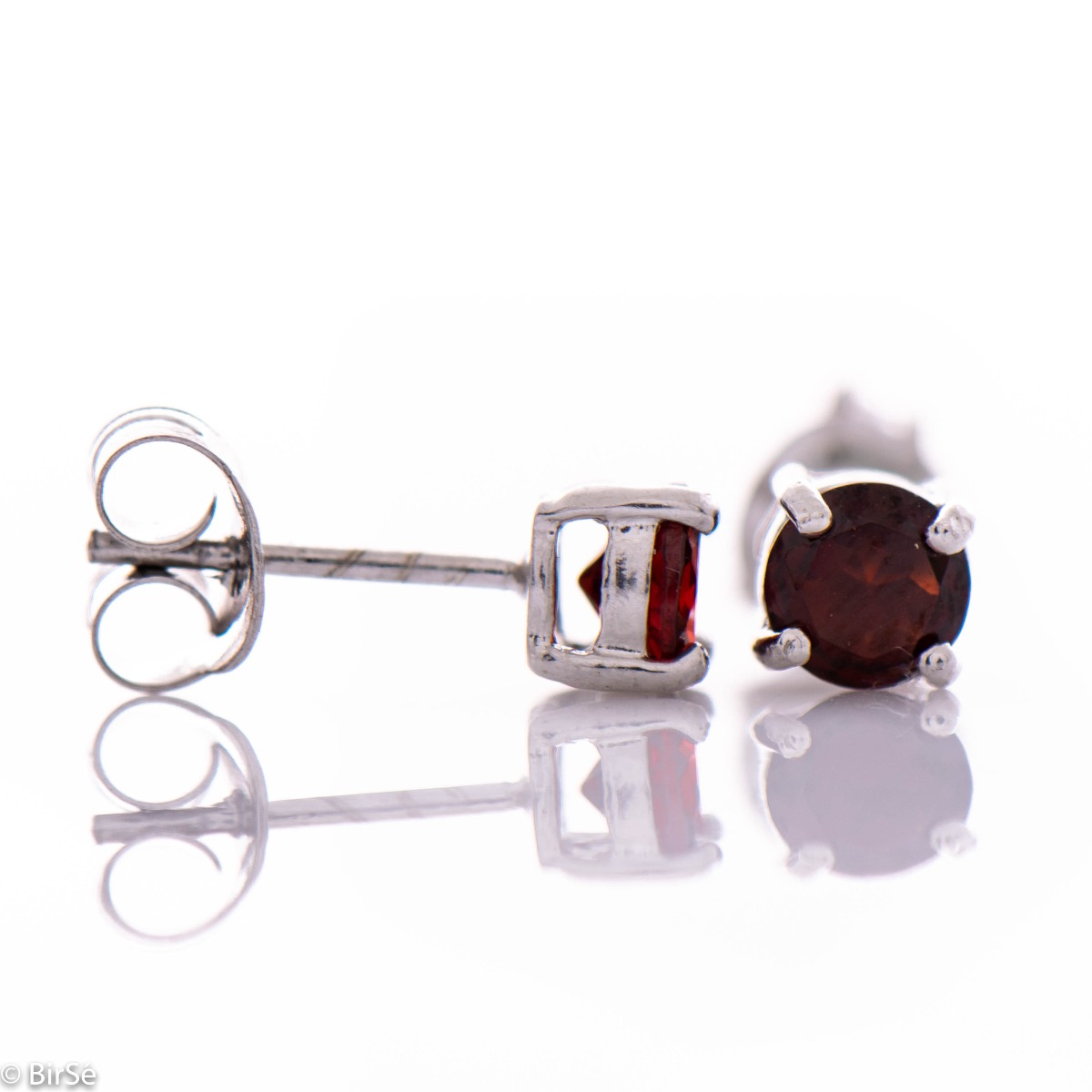 Фини и нежни обеци на щифт с изящна изработка изцяло от родирано сребро допълнено от блясъка на естествен камък гранат.Всички бижута с естествени камъни са придружени от специален сертификат, удостоверяващ автентичността им. На този сертификат можем да изпишем и лично послание за Вас или за когото е бижуто. Вижте още информация тук.