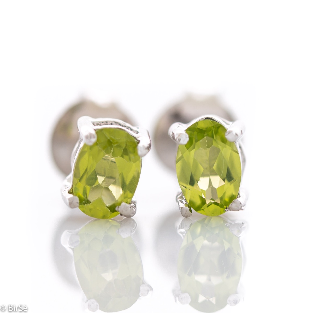 Нежно сияние на красив естествен камък перидот, съчетан с фина изработка изцяло от родирано сребро, в новите ни дамски обеци на щифт. Всички бижута с естествени камъни са придружени от специален сертификат, удостоверяващ автентичността им. На този сертификат можем да изпишем и лично послание за Вас или за когото е бижуто. Вижте още информация тук.