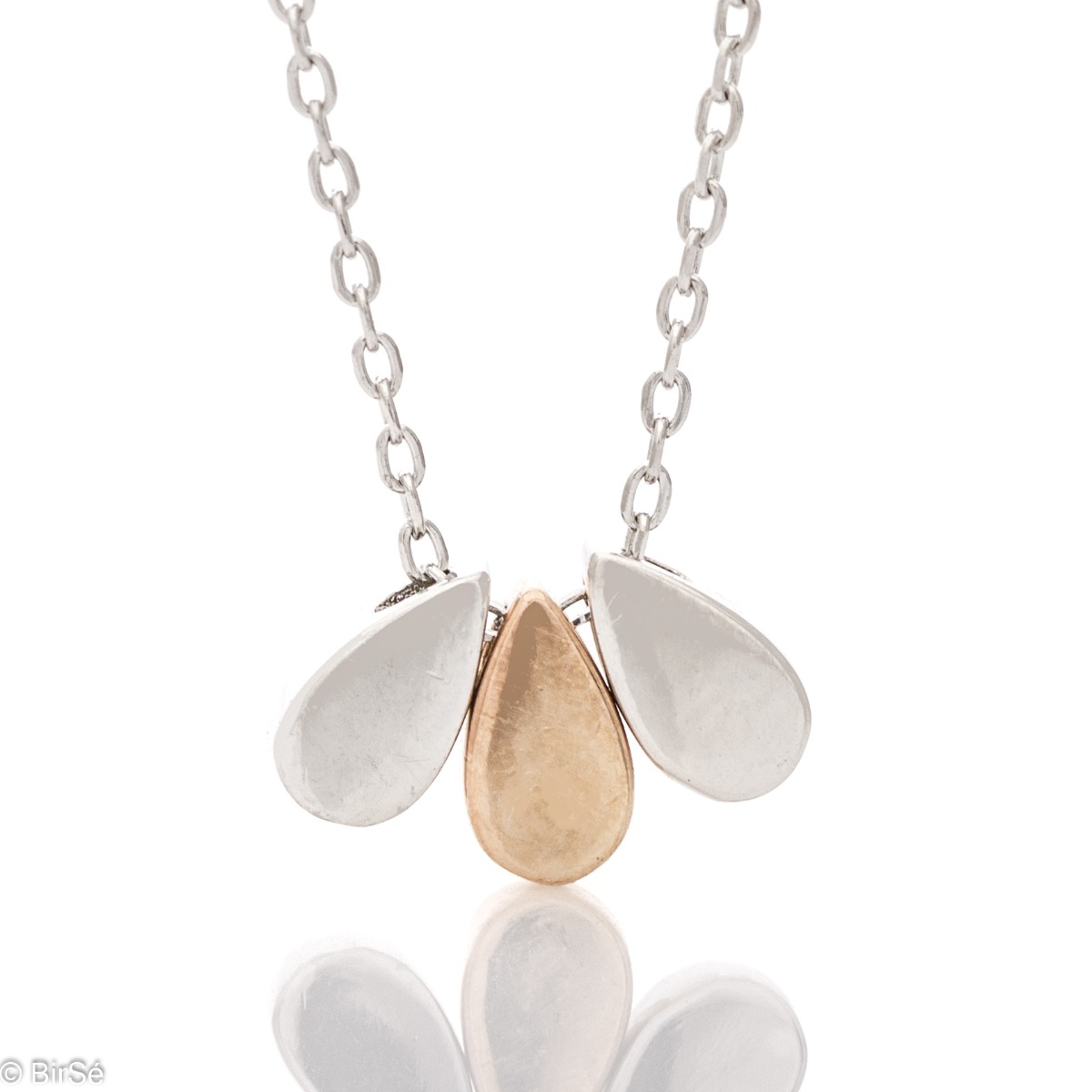Елегантна изработка на дамско колие, с верижка от фино родирано сребро, нежно придържаща капки от два цвята сребро. Вълшебен дар за любимата жена.