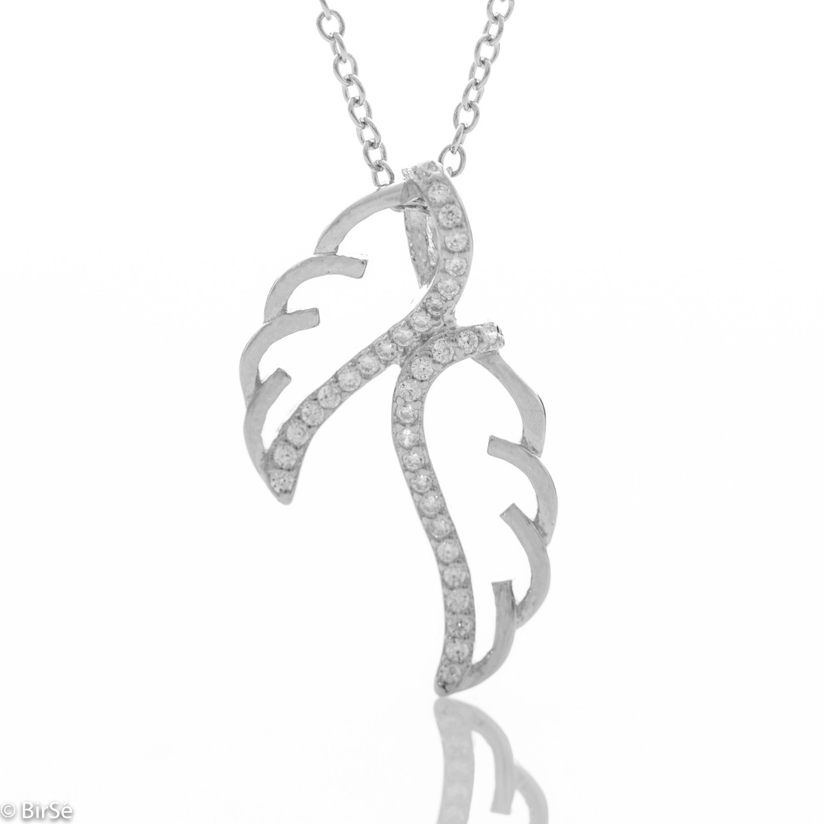 Изящно изработено колие от сребро с винаги актуален елемент при бижутата - Ангелски крила. Елегантно оформено и украсено с циркони това колие ще бъде Вашето любимо бижу. Всички бижута са подаръчно опаковани и придружени от сертификат за качество и гаранция.