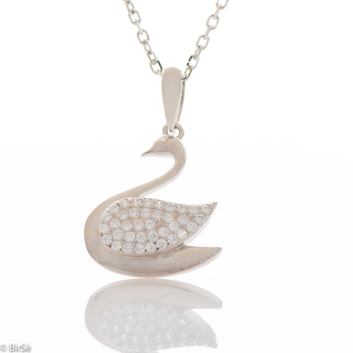 Красиво колие Лебед с изящна изработка на детайлите от родирано сребро и блестящи циркони. Всички бижута са подаръчно опаковани и придружени от сертификат за качество и гаранция.